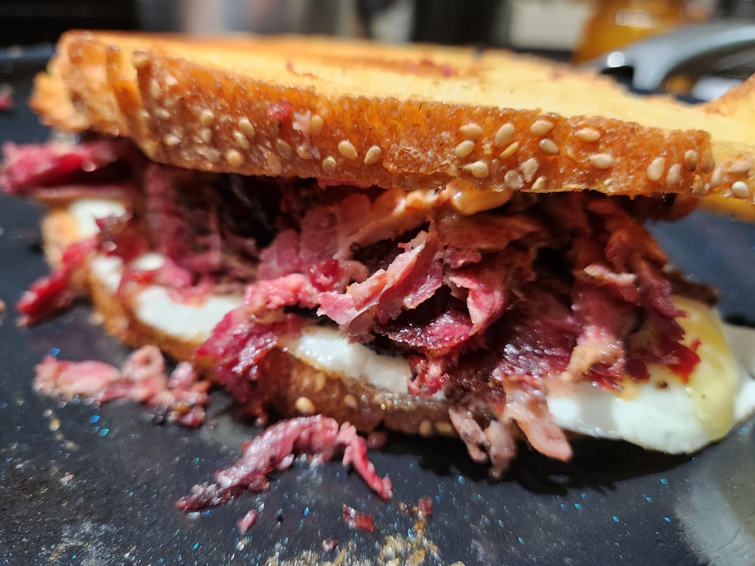 1. The brine from the pastrami, and the seasoning plus the yolk… mmm to die for