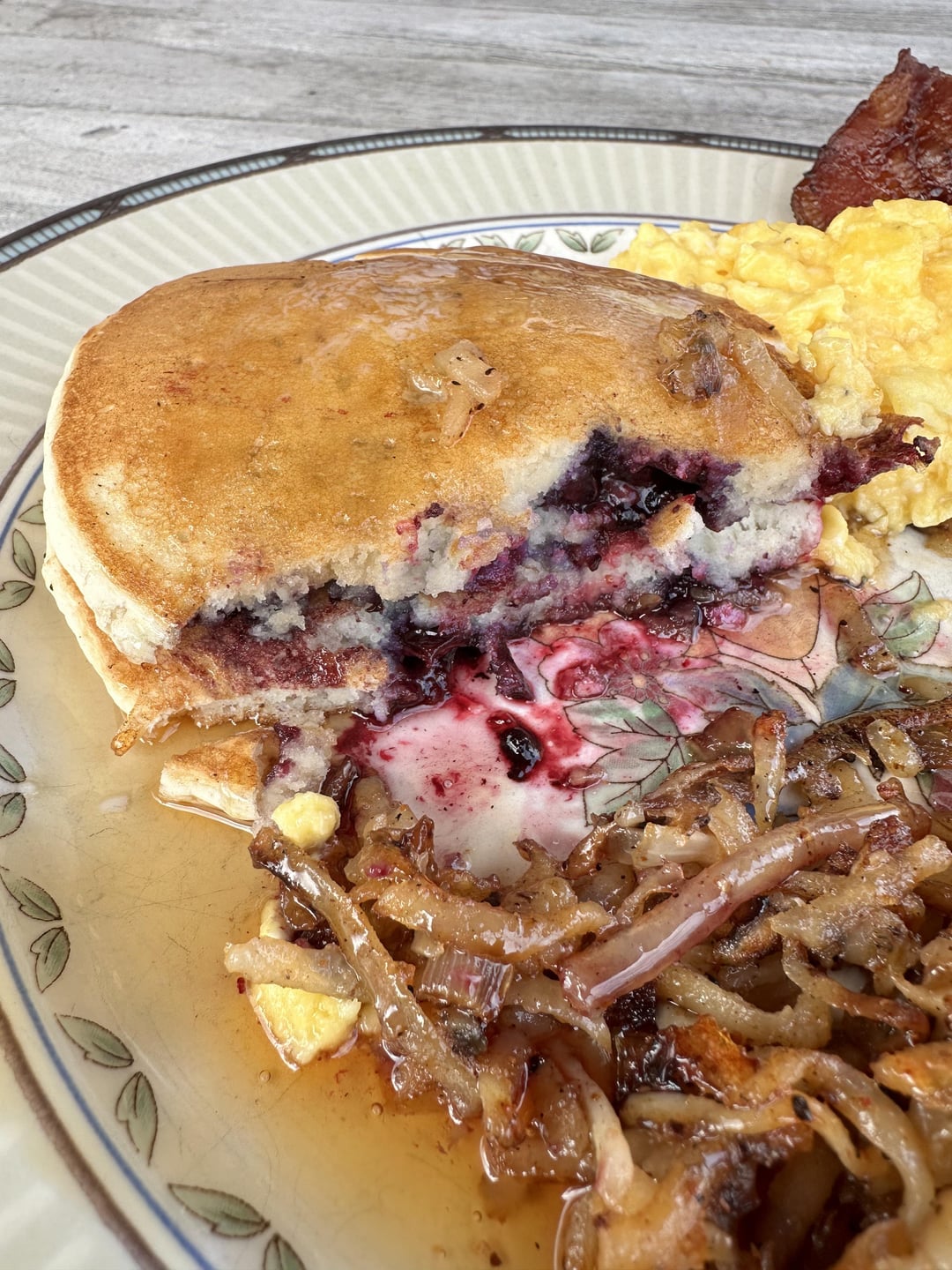 Booyah_7 2 years ago That looks so good! Those are great blueberry pancakes, with A LOT of blueberries. Sometimes I can barely tell the difference between regular and blueberry pancakes (when they just toss a few blueberries into the mix).