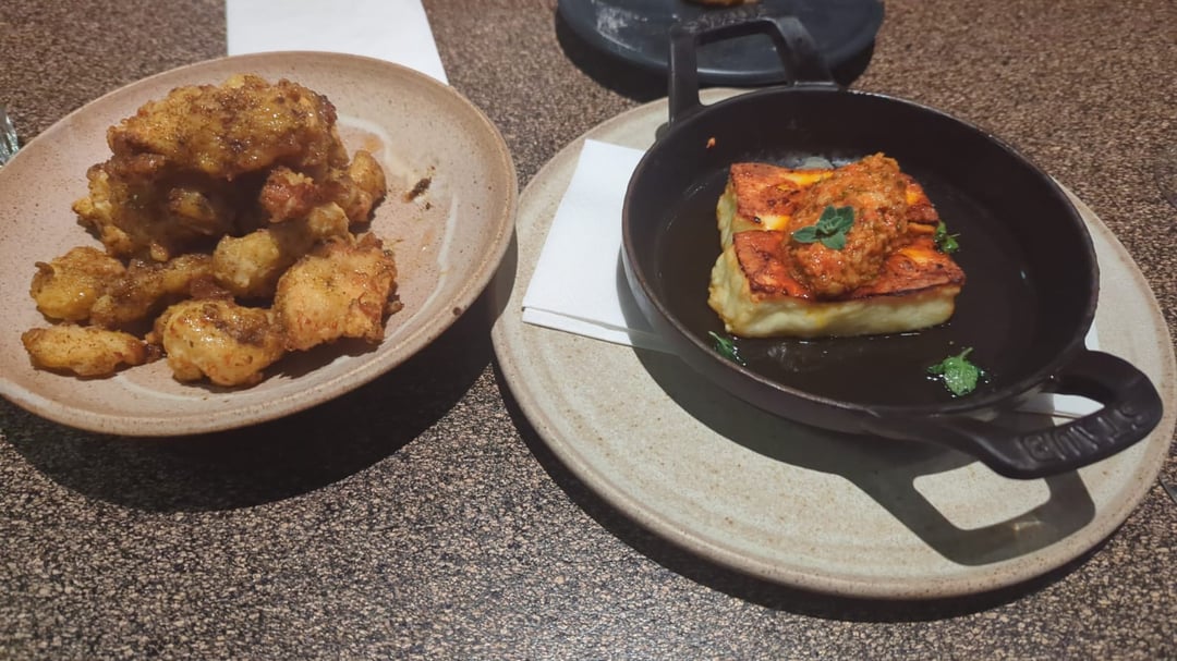 In the second photo is the curried cheese curds with chilli honey again on the left and St James halloumi on the right.