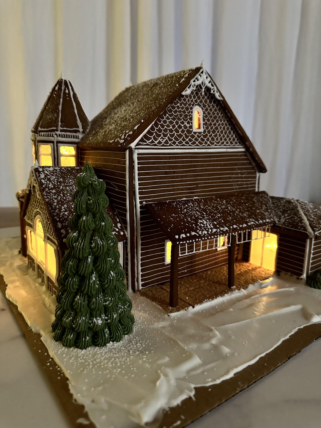 Added landscaping too. Isomalt windows, gingerbread, royal icing, and led lights inside. Porch floors are store-bought graham crackers because I didn’t feel like making more dough. I used sugar cones as the base for the treesby odetosummer 3 Comments traumatized_shark 2 years ago Wow this is so well done!! [deleted] 2 years ago [removed] Stunning_Thing6851 2 years ago Holy cow this is gorgeous!Write A CommentYou must be logged in to post a comment.