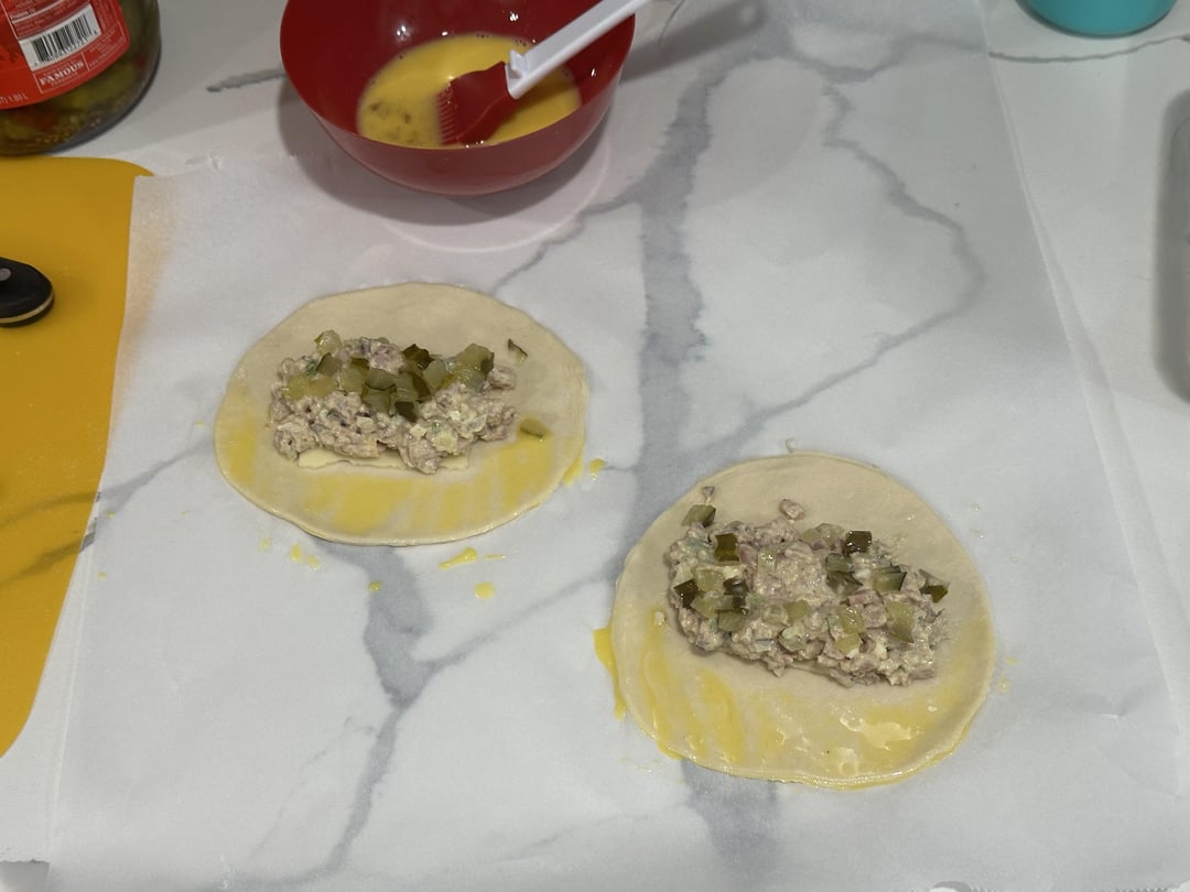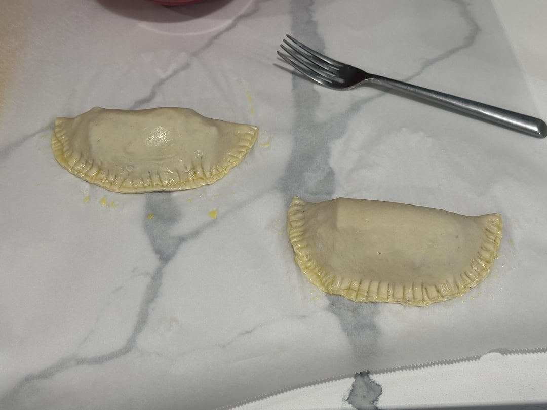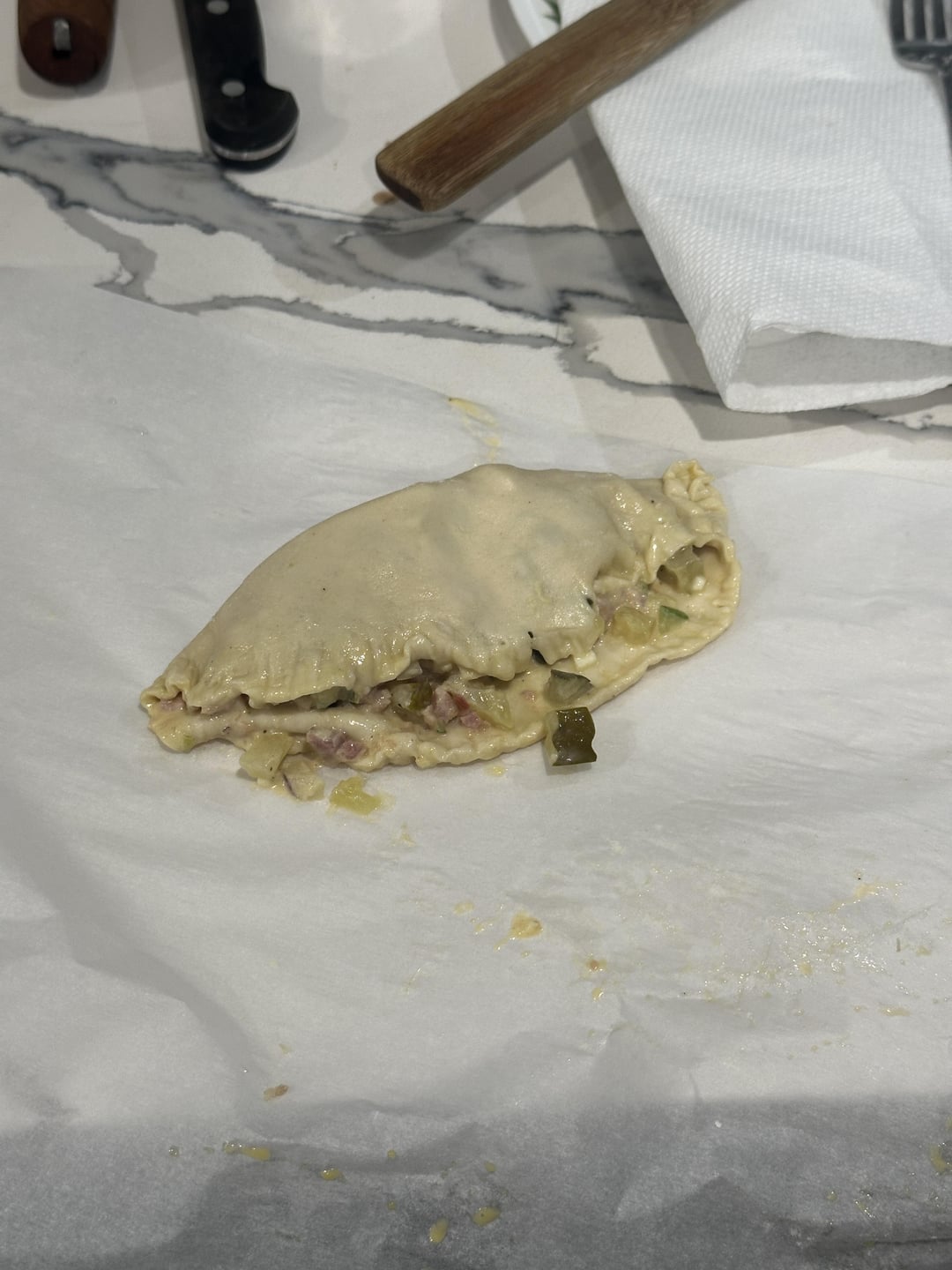i am not an empanada expert. i’ve only made them twice before and i tried to make 2 of these. i attempted to save the one in the last pic 4 different times and it just was not happening.