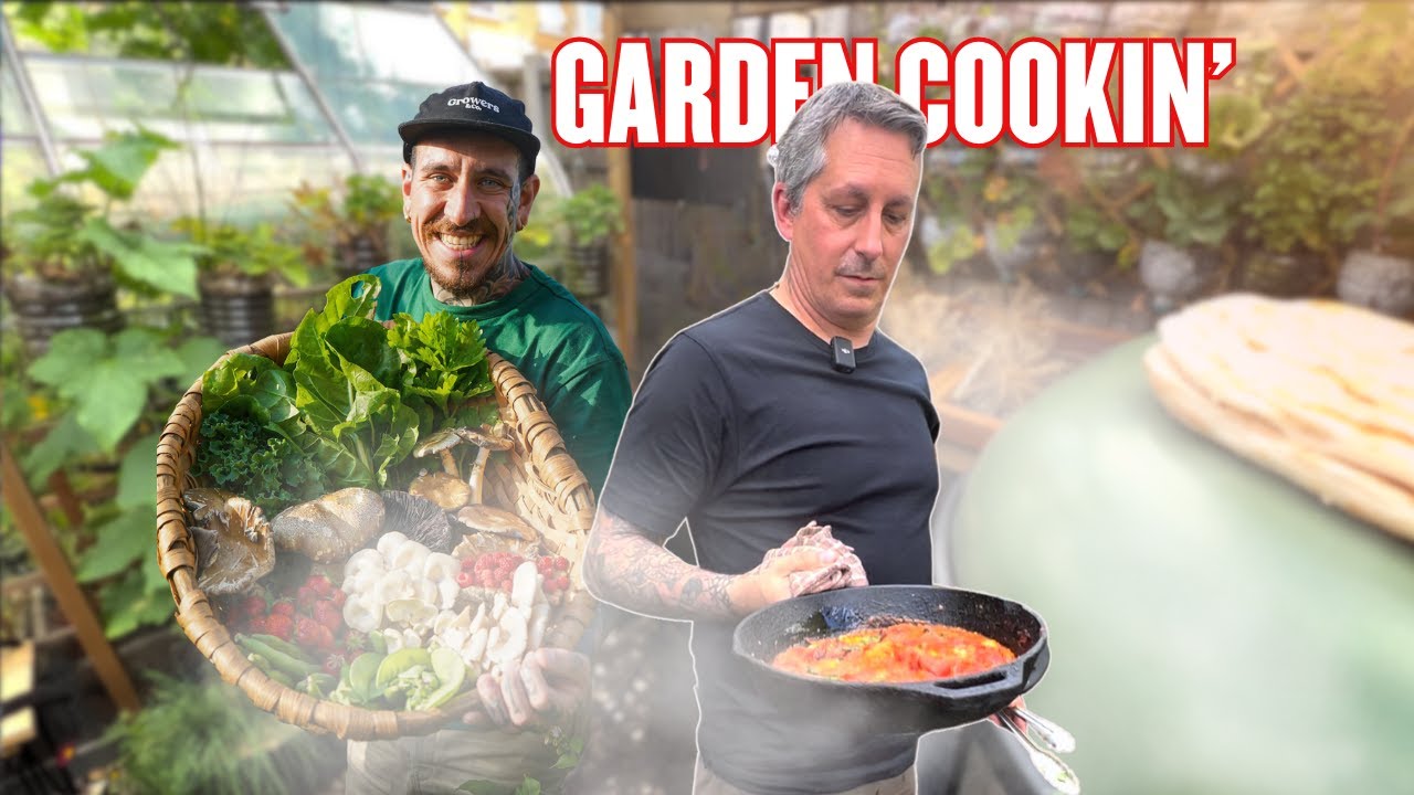 Oh my God that’s so good man so fresh a good Italian tomato sauce that’s a hot yeah 100% oo it’s [Laughter] hot this is our own Muk mukbang video so we do some sounds Like Welcome to the Garden man this hey what’s up I see you so we’re meeting up in the Garden today to cook something quick straight from the garden to the kitchen I’m going to light this B and then we’re going to pick some stuff from the garden it’s a rare occasion