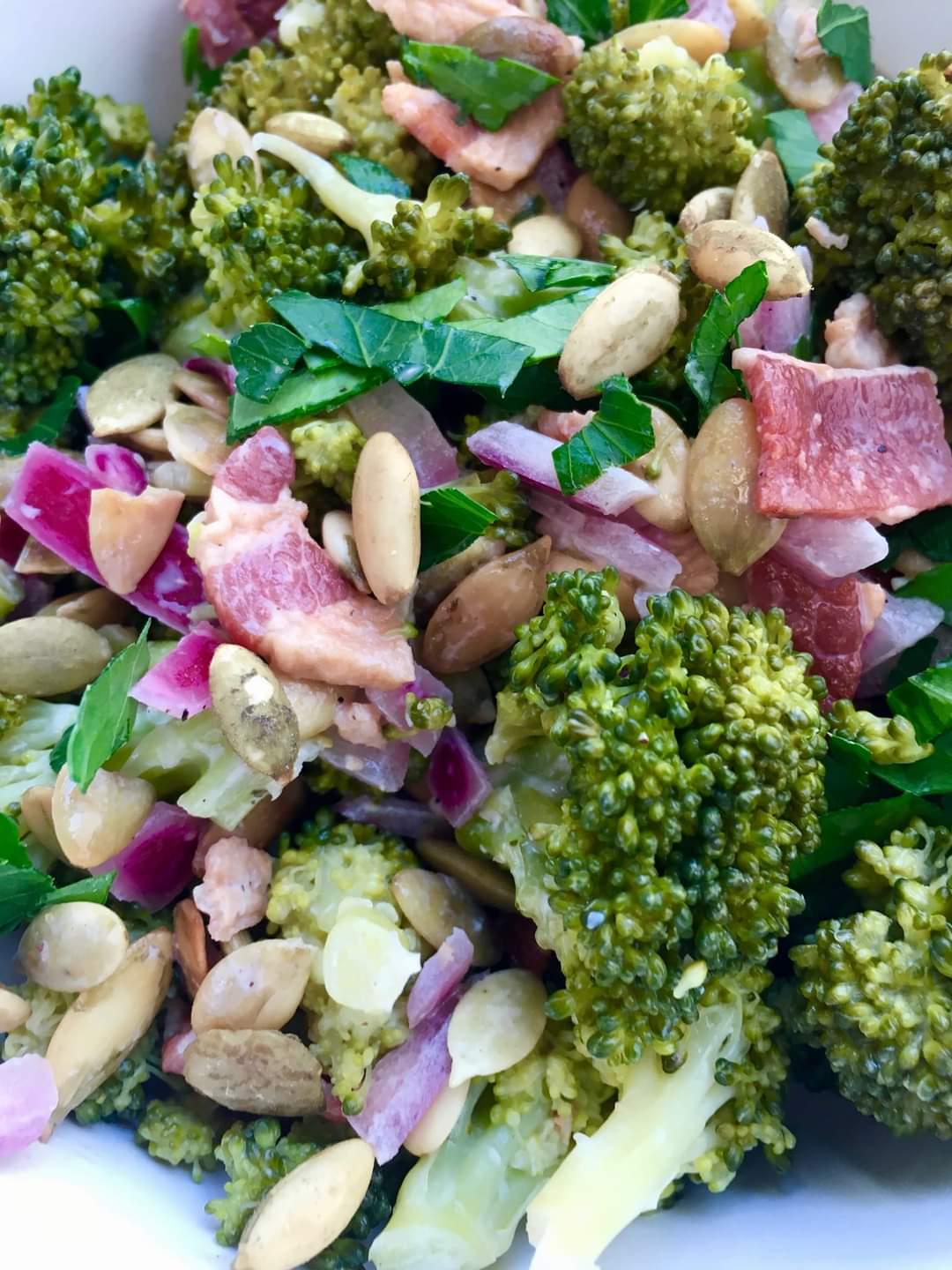 Mayo-Free Broccoli Bacon Salad with Toasted Pumpkin Seeds
