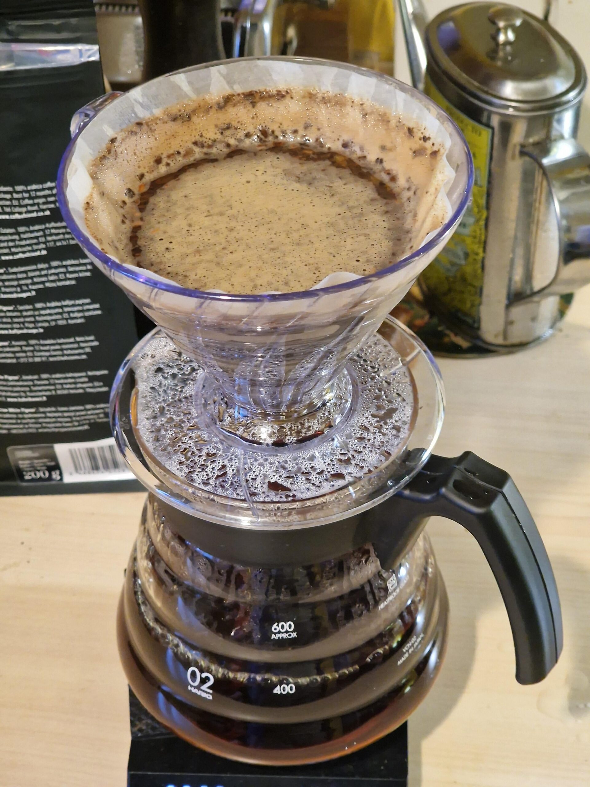 Interesting discovery for us is that the flavour improves when brewing stronger coffee and then watering it down vs using less coffee. So far imho Aeropress brews crispy and clear taste (brewing 2 minutes), french press (4 minutes brewing) makes coffee sweeter and this one is somewhere in between. The beans are somewhere in medioum roast and using water at 90°C. With v60 I use Hoffman’ technique.