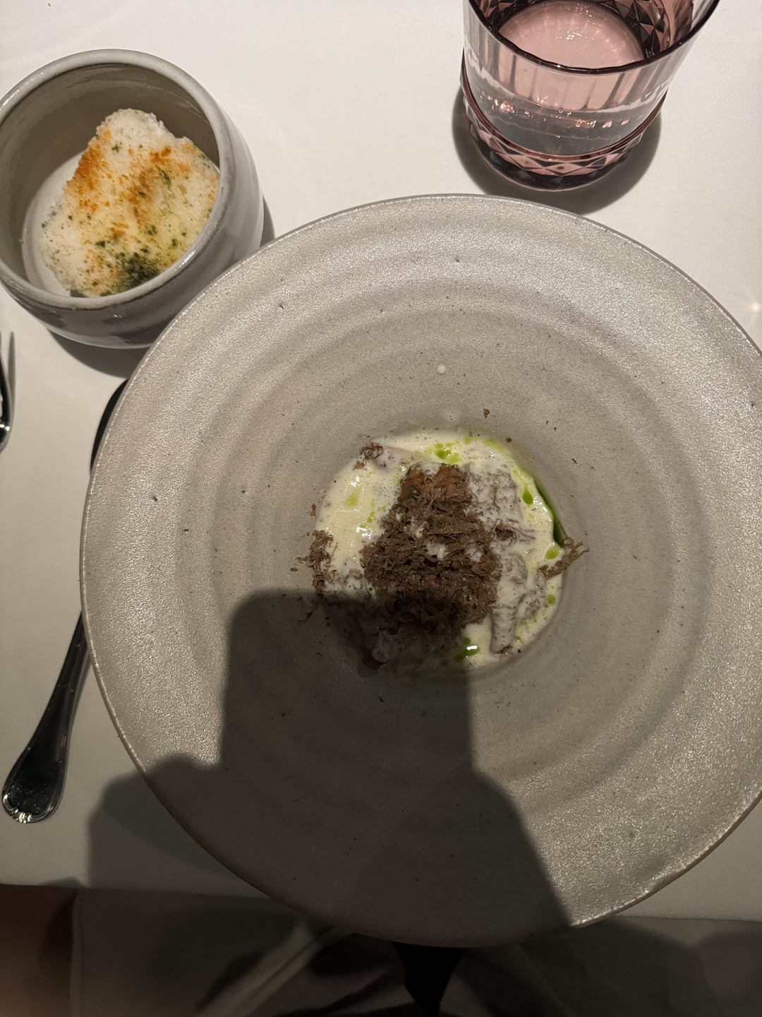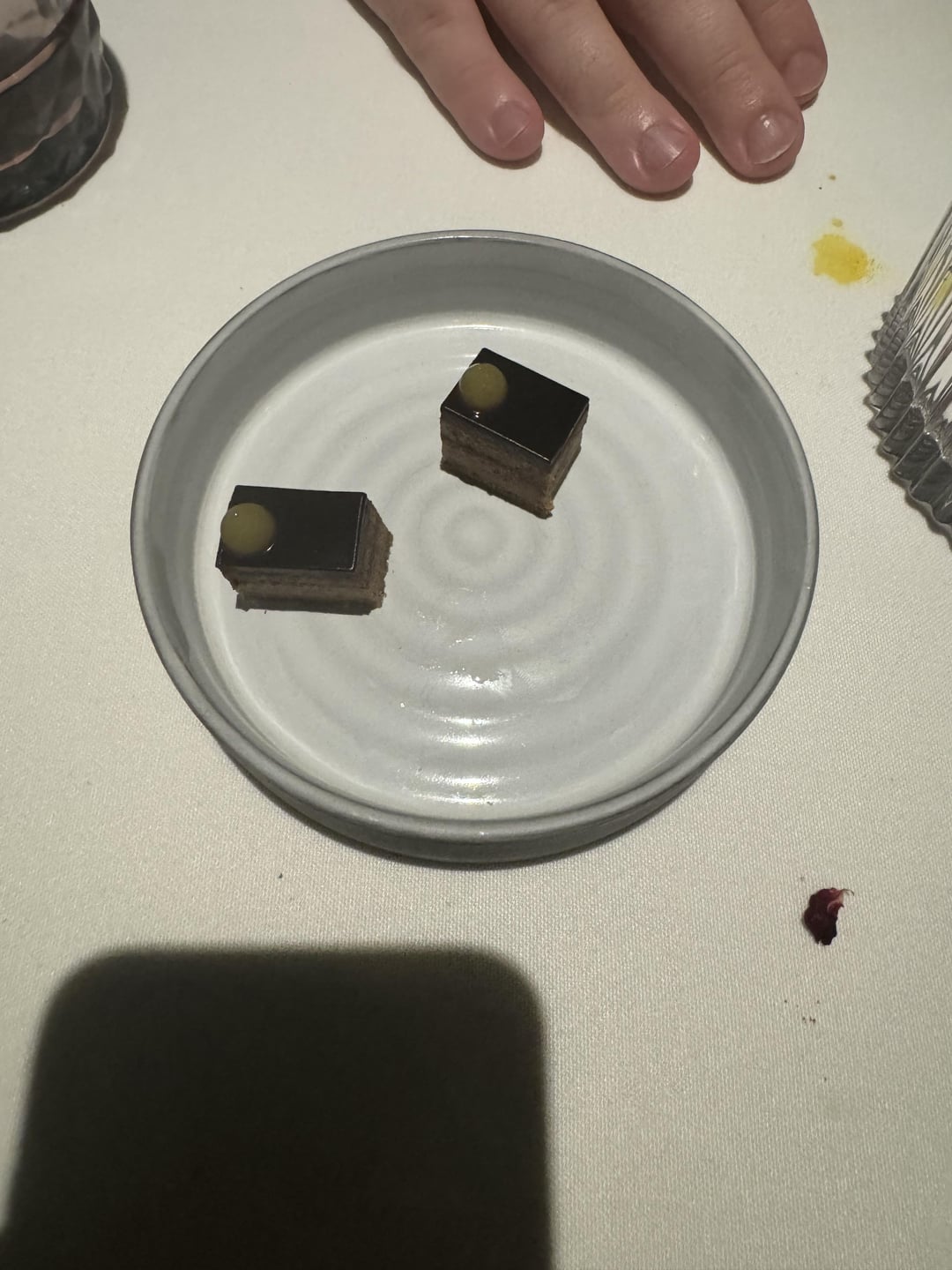 – the service was great but not excellent. For example, we had a few different sommeliers for each pairing, some of which failed to wipe the wine bottle after pouring. I don’t care about this but I do think that’s optimistic for their future: there are obvious things they can do to get to **.