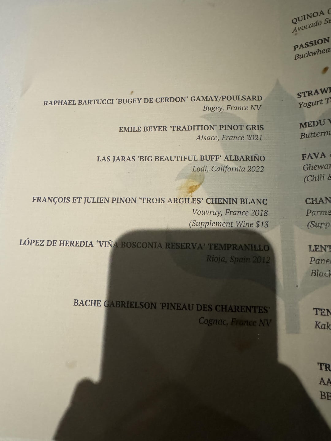 – the wine pairing was good. I would recommend it but if you have a low alcohol tolerance, I’d prioritize cocktails.