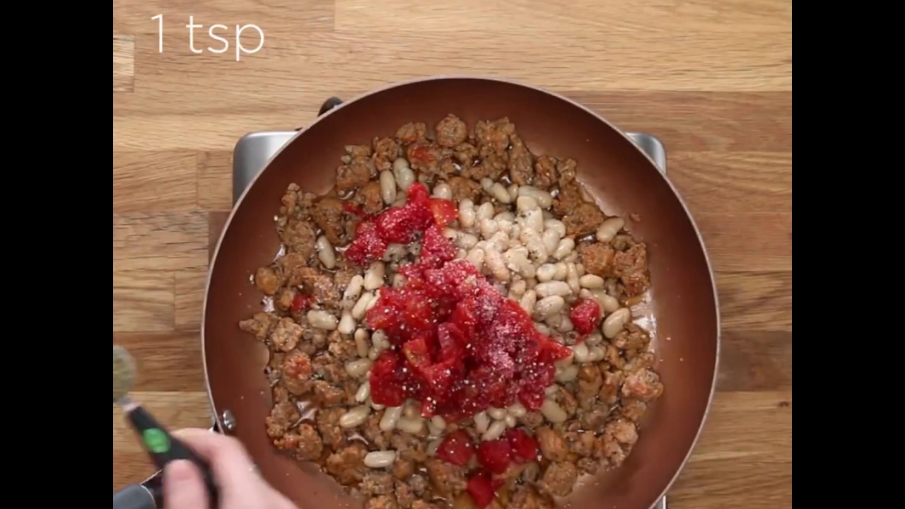 3. Pour in the beans, tomatoes, salt, pepper, and thyme, and mix until everything has warmed through.