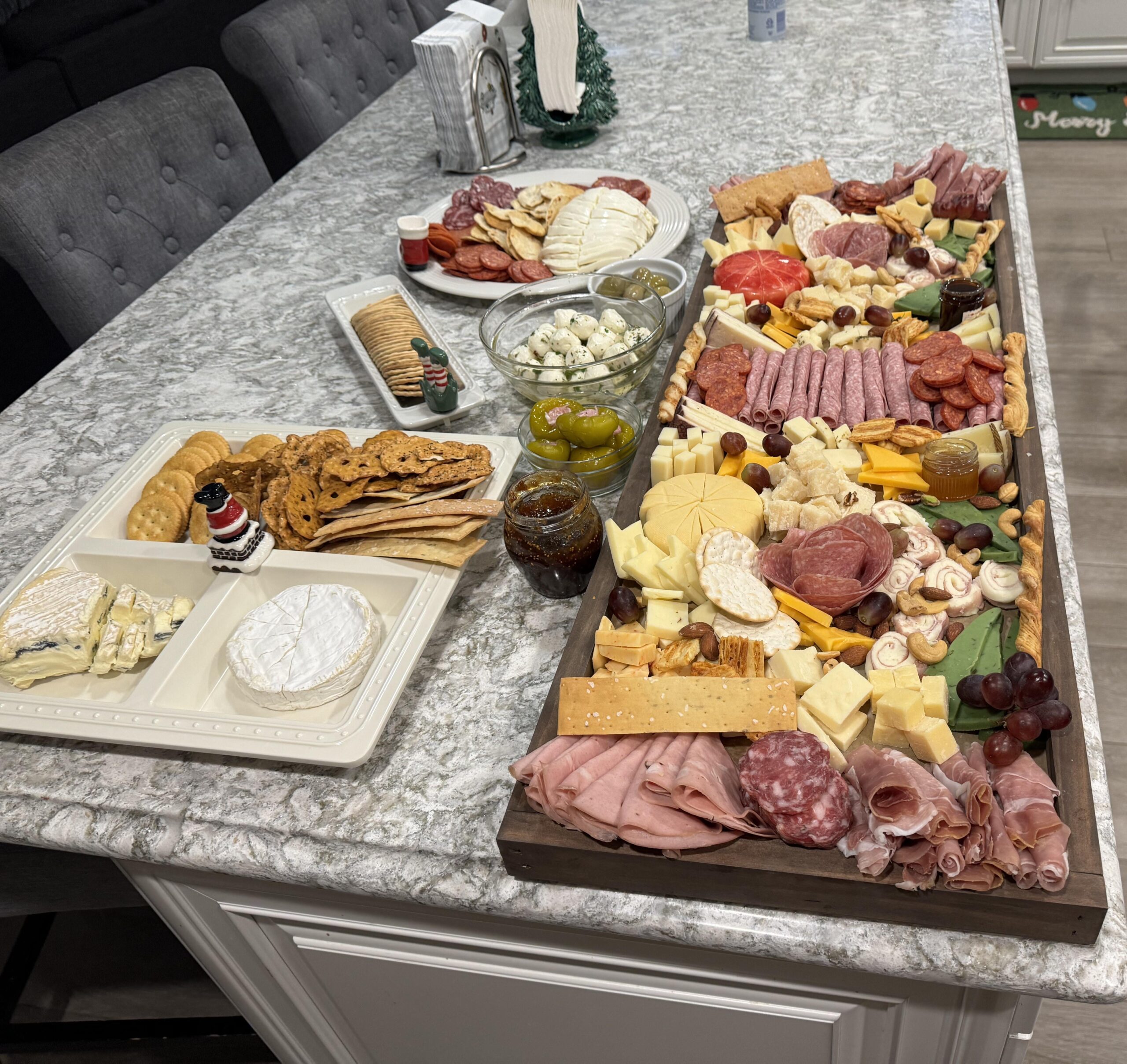 Cheeses: Blue, Brie, jalapeno/peppadew cheddar, dubliner, mozz, edam, smoked guoda, baby seiss, pepperjack, manchego, ubriaco, parm reggiano white gold, grana padano, cheddar/gruyere, pesto guida, aged yellow cheddar