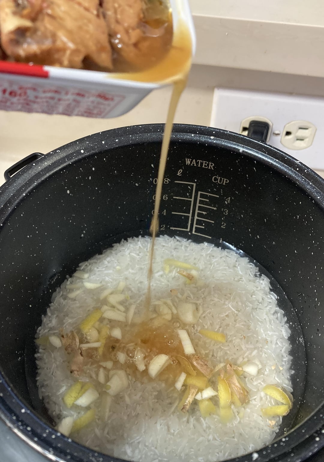 (4-5) Tin oil and fish into the rice cooker – this fish was a little dry, so I thought it needed to be rehydrated by cooking with the rice