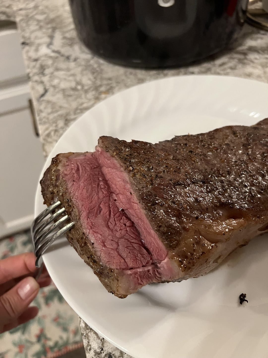 My first attempt at a sous vide steak cooked medium rare with a quick char. How’d I do?