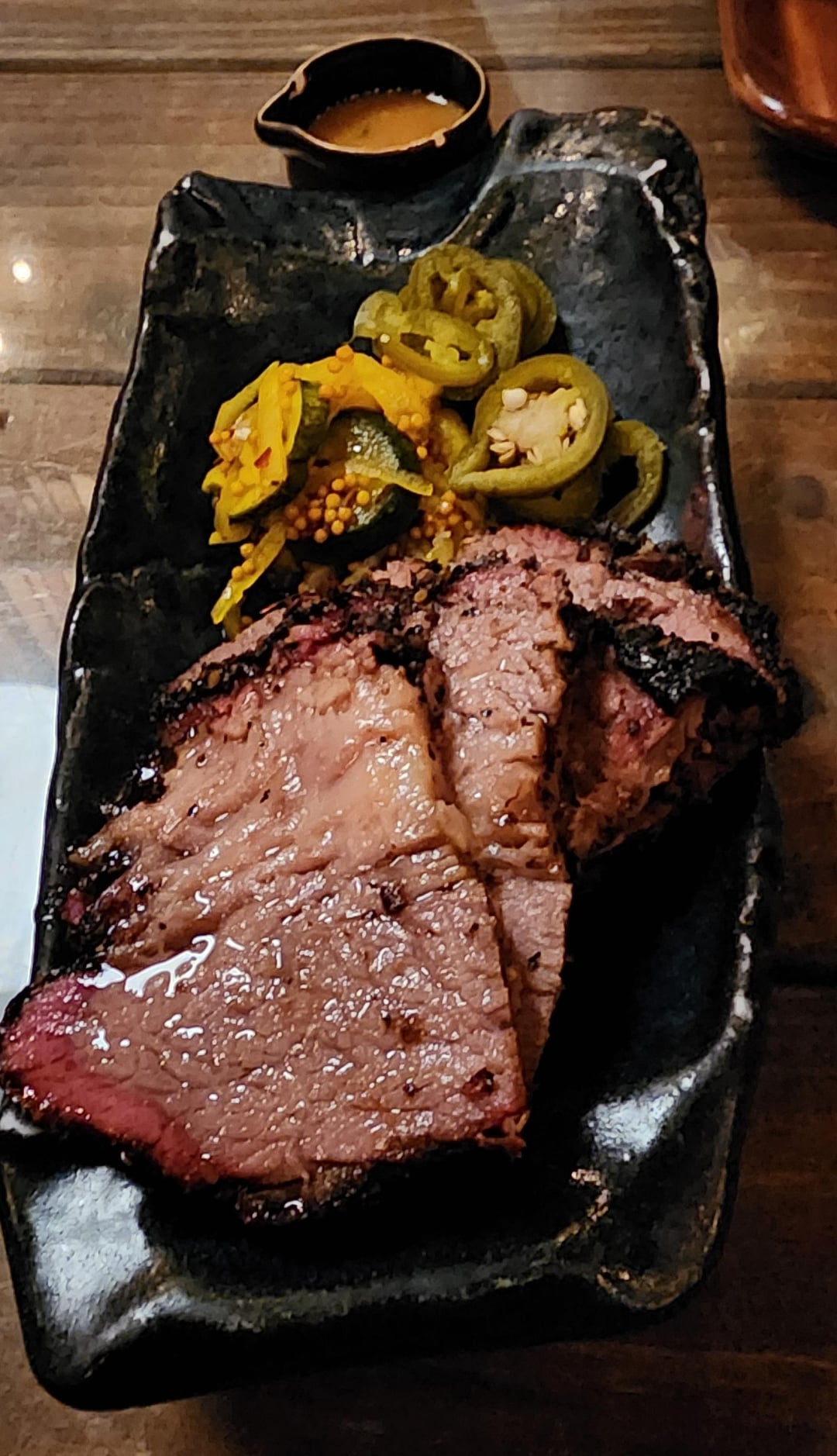Standouts for me was the hot pockets, the texture of the filling is almost creamy and the cheese crisps are so good. The brisket was very good as usual and I don’t usually use bbq sauce but that sauce is so rich and delicious. And I for sure good my fill of cornbread this time.