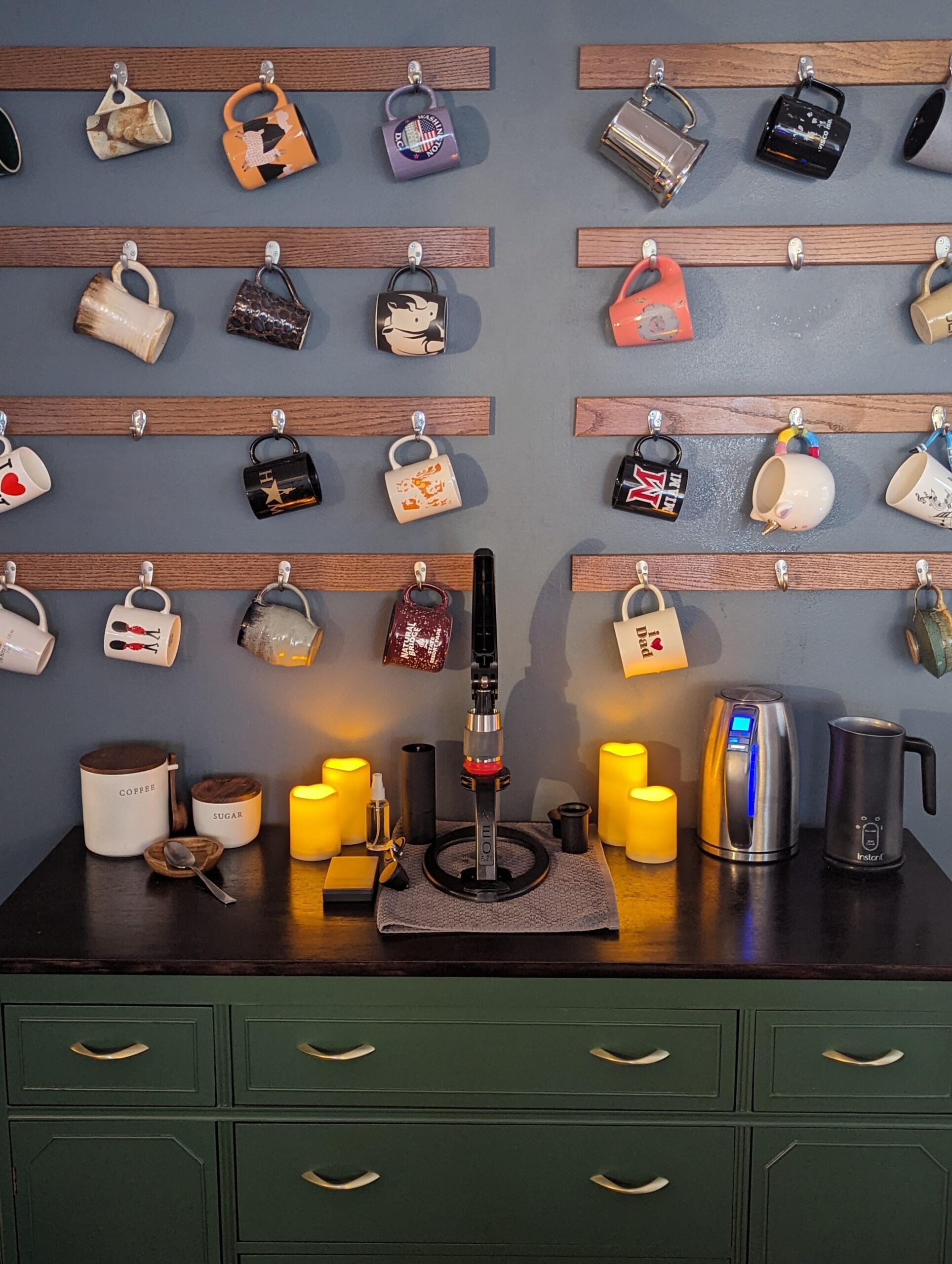I had told my wife that maybe I could get into espresso if we move to a house with more counter space. So my wife completely refinished this buffet ($10 on marketplace) by herself. Now I’m pulling shots better than many of my local coffee shops already.