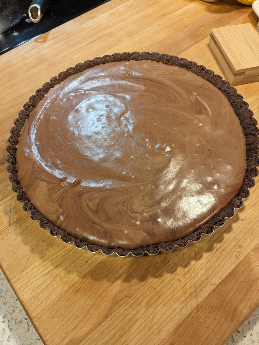 Chocolate mousse tart with chocolate shortbread crust and whipped cream