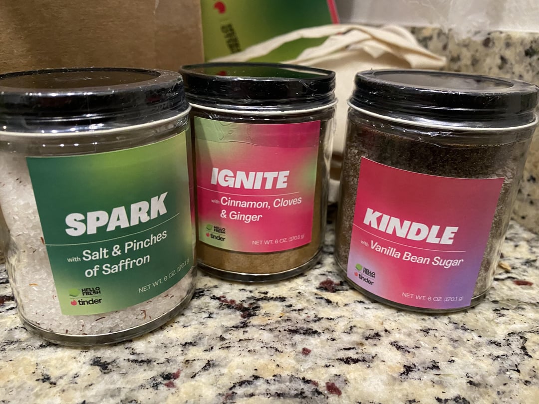 Last month I got an advertisement in my box for HFxTinder. No products, just a piece of paper. My partner and I had a good laugh. Like, imagine a dating app that matches based on taste preferences? Select your ideal date night meal and get matched with someone in your area who chose the same box!