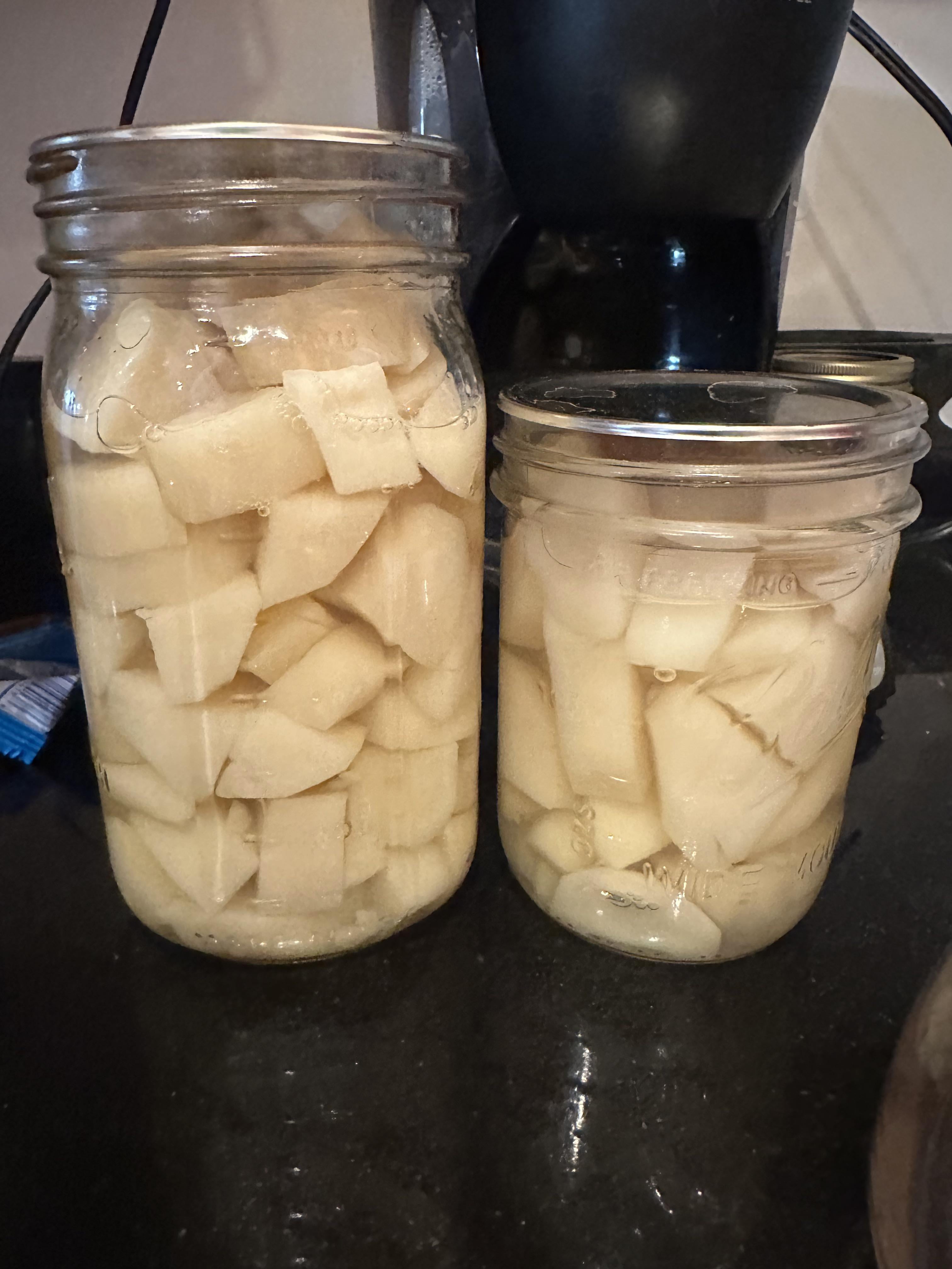 So this is my first time using my new presto 16 quart canner. I followed the instructions in the canner booklet for canning potatoes but I am not sure if this is what it is supposed to look like. I processed them for 40 mins and then cut off the heat and moved them off the heat source. I left them in the canner over night and did not open it until this morning. Is this fine the way it is or did I do something wrong?