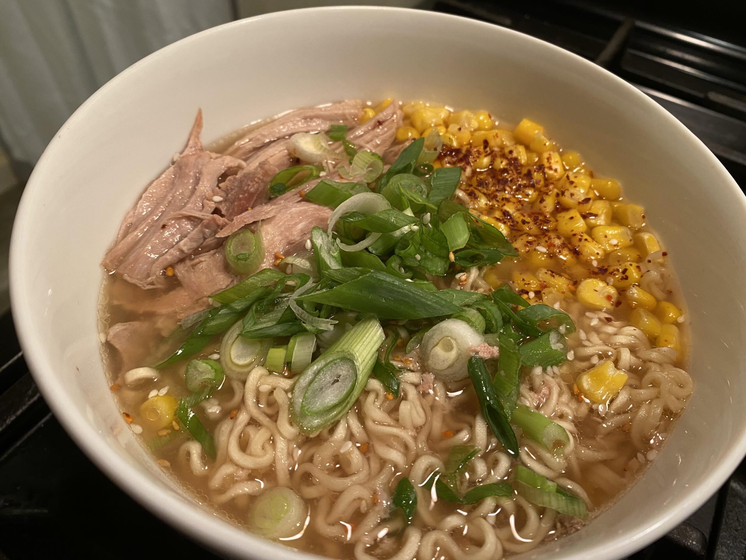 Throw out season packet, add pork w/ broth, corn, Gochugaru, sesame oil, sesame seed, and green onionby oknotonko Write A CommentYou must be logged in to post a comment.
