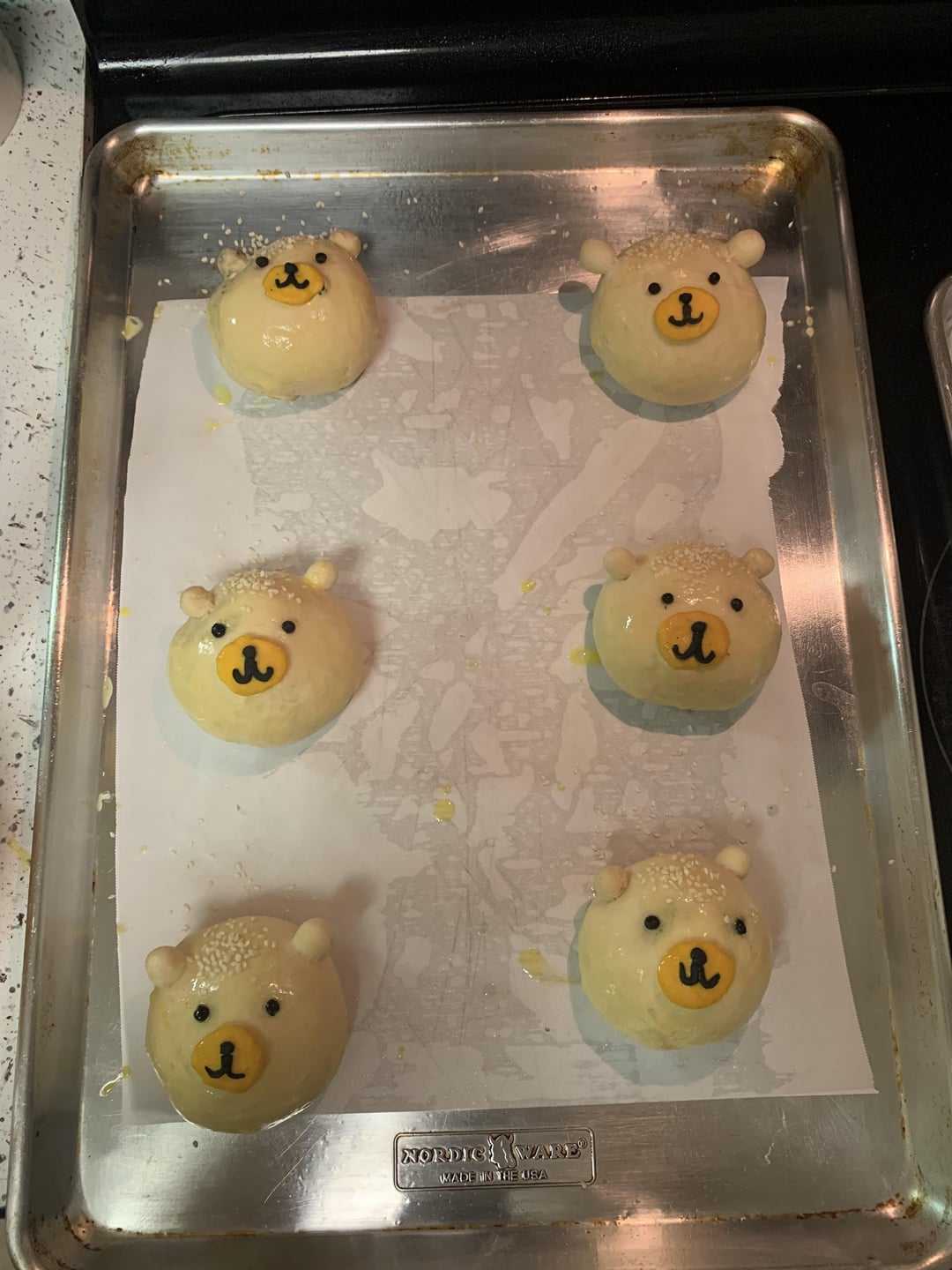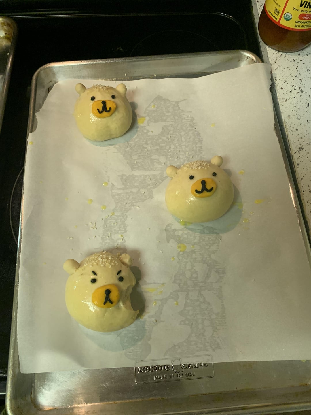 I am making sloppy joe and steak fries, and planned to make hamburger buns, but i wanted them so be cute, so i got some inspiration from other bear buns i saw on tiktok.