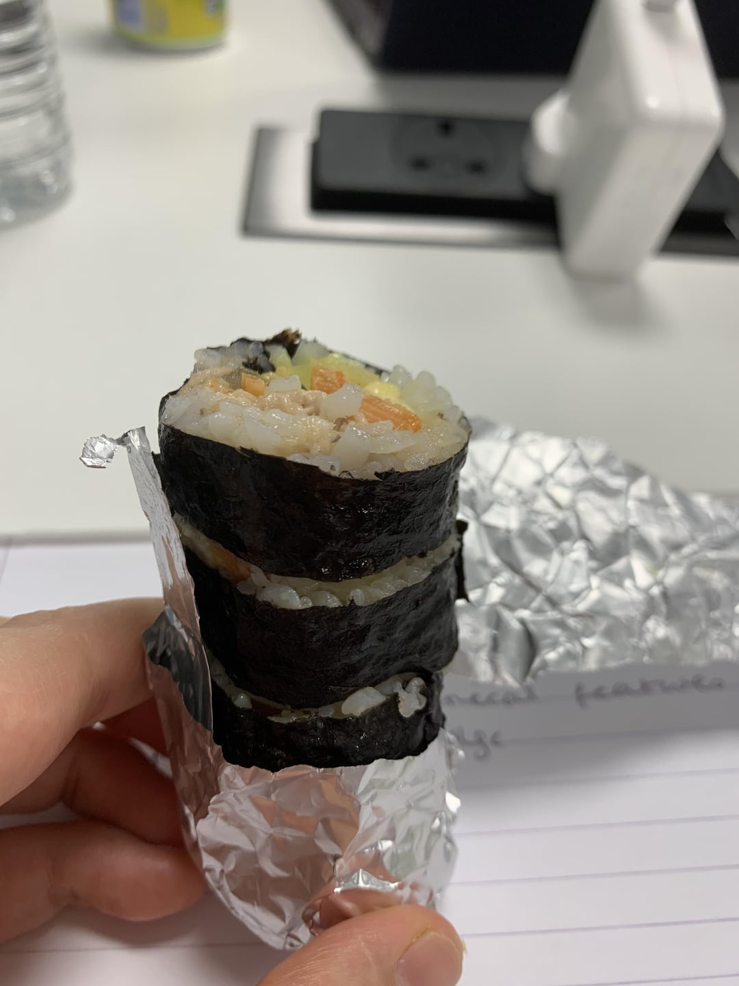 as the title says, I’m super proud of myself for making this for my lunch today :). It’s not the worst and not the worst but I’m happy with it. This is an attempt on 참치 김밥 which is a tuna mayo kimbap. I went to a Korean grocery shop yesterday and bought braised burdock root and yellow radish pickle to put into this today 🙌🏼 oh and with the left over veggies I made Mayak kimbap to make sure I didn’t waste it