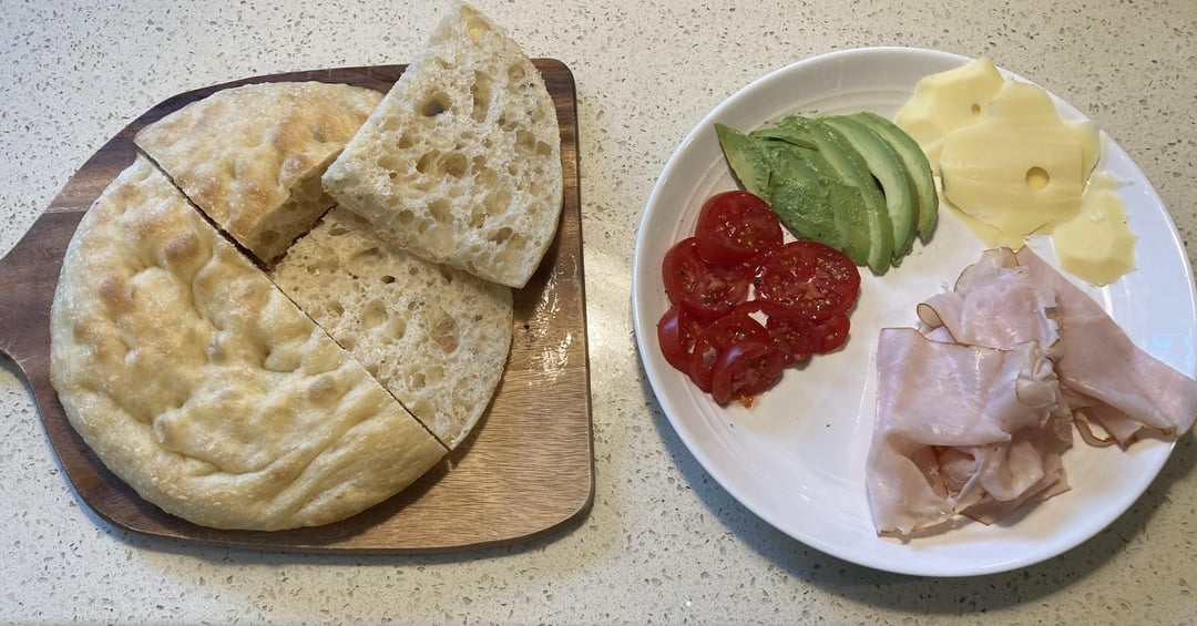 Top bread (homemade focaccia made from leftover pizza dough)/