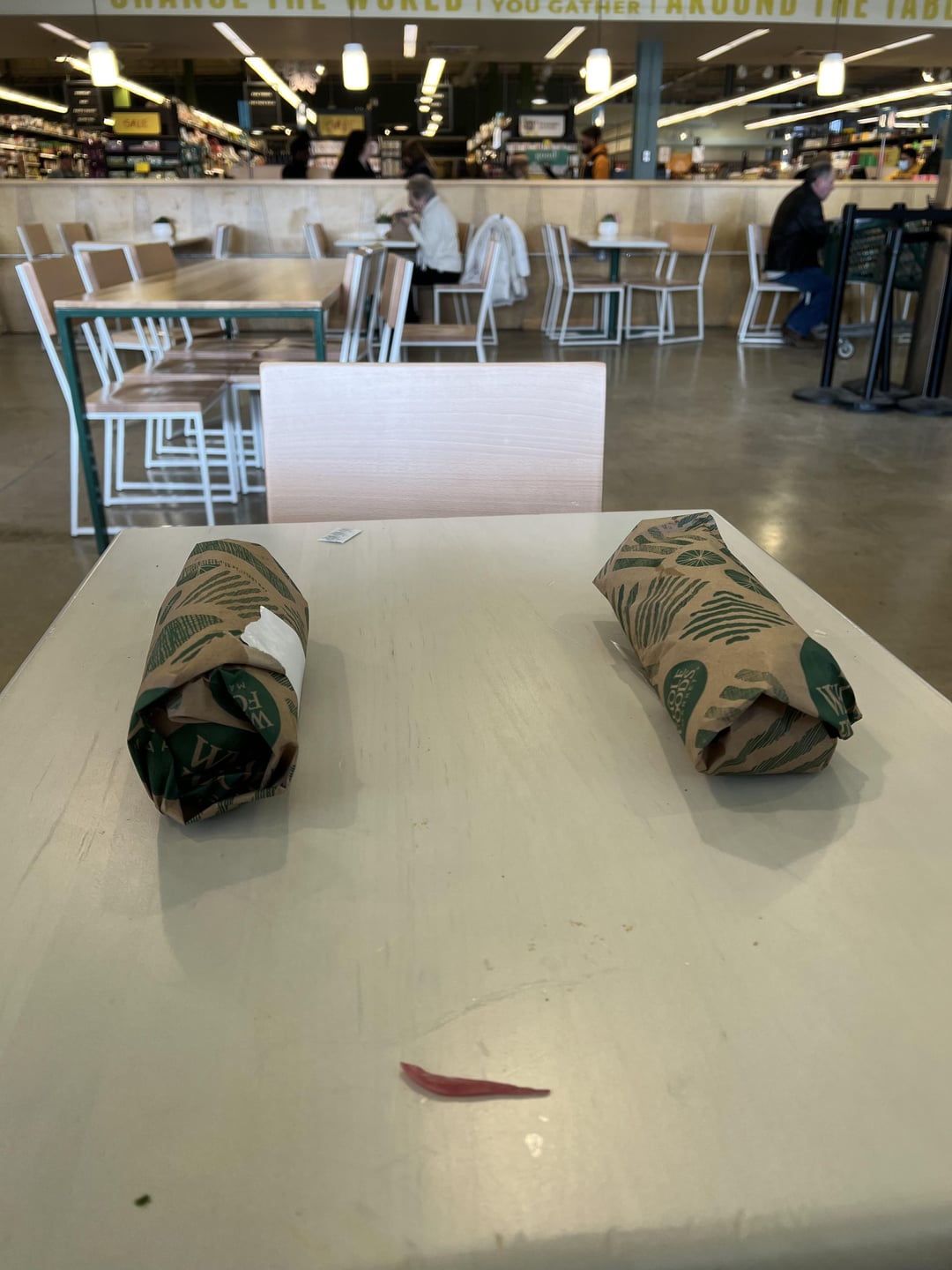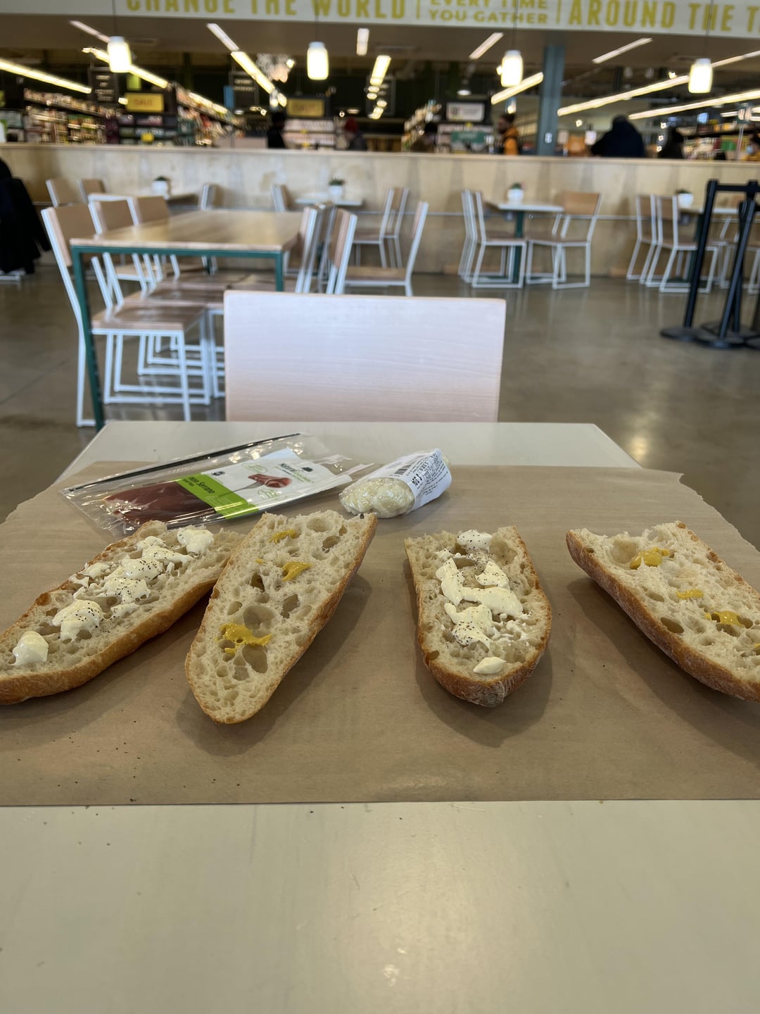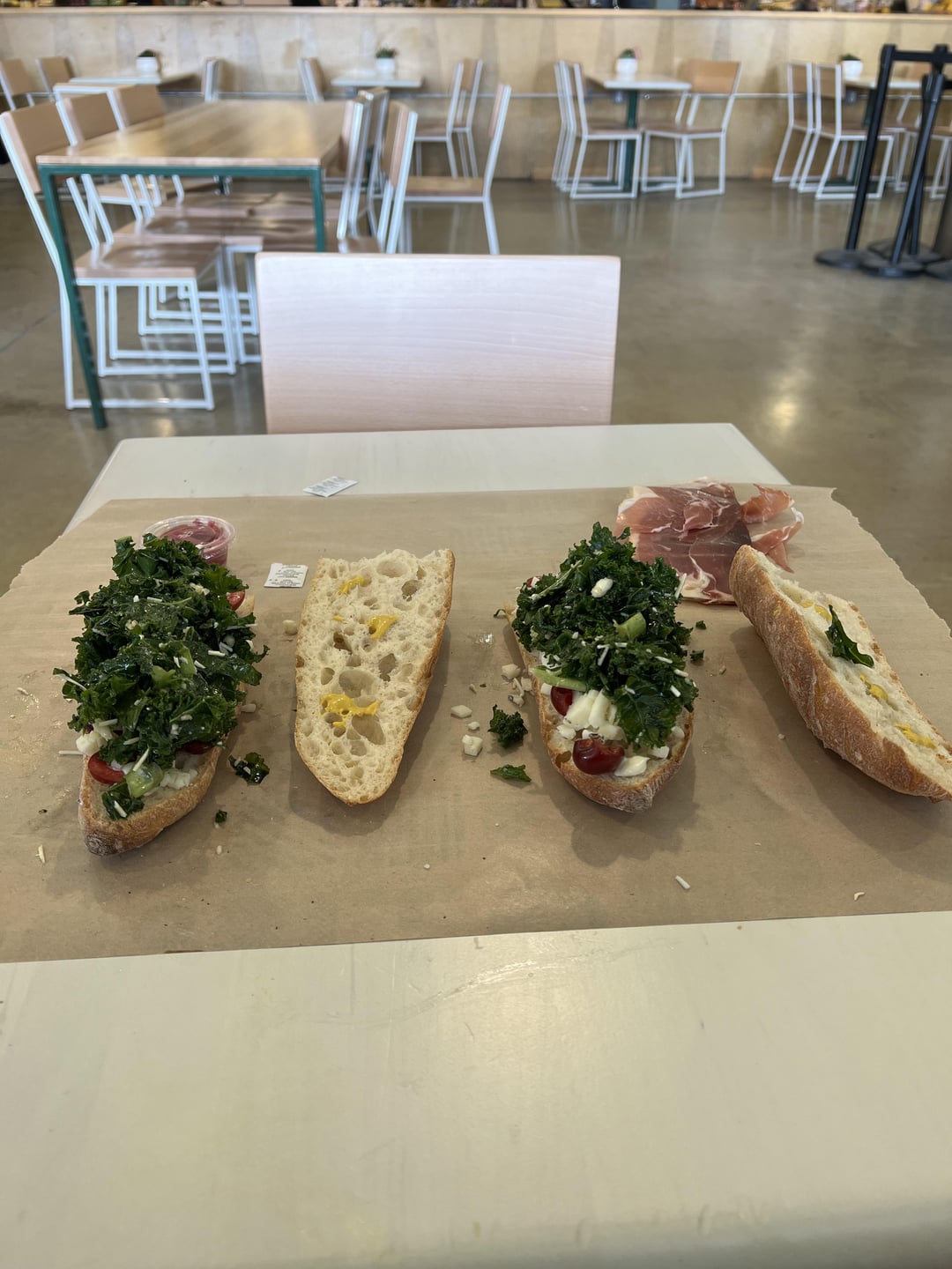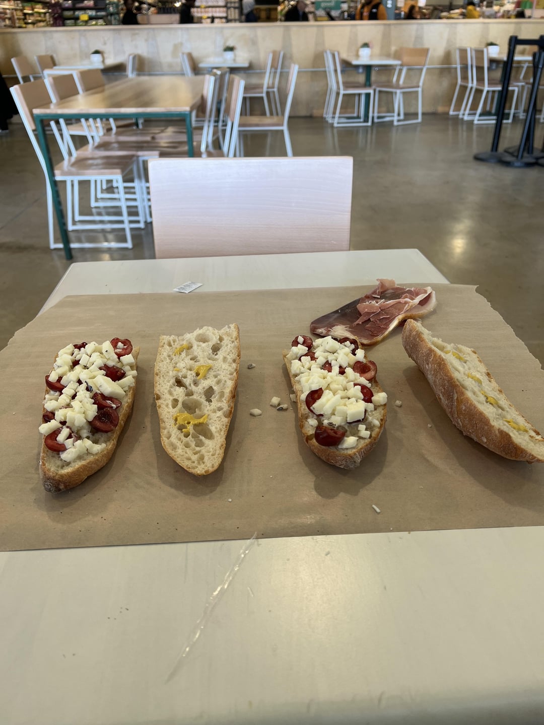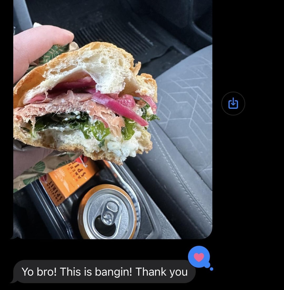Made a sandwich for a coworker on my break with jamon Serrano, freshly cut 3 month manchego and he wanted it shredded but all I had was the cheese cutter so I freestyled, cherries, sir Kensington mayo, pepper, pickled onions, garlicky kale from prepared foods (100% the best prepared food item that’s at Whole Foods), and tiny bit of mustard on an ancienne baguette