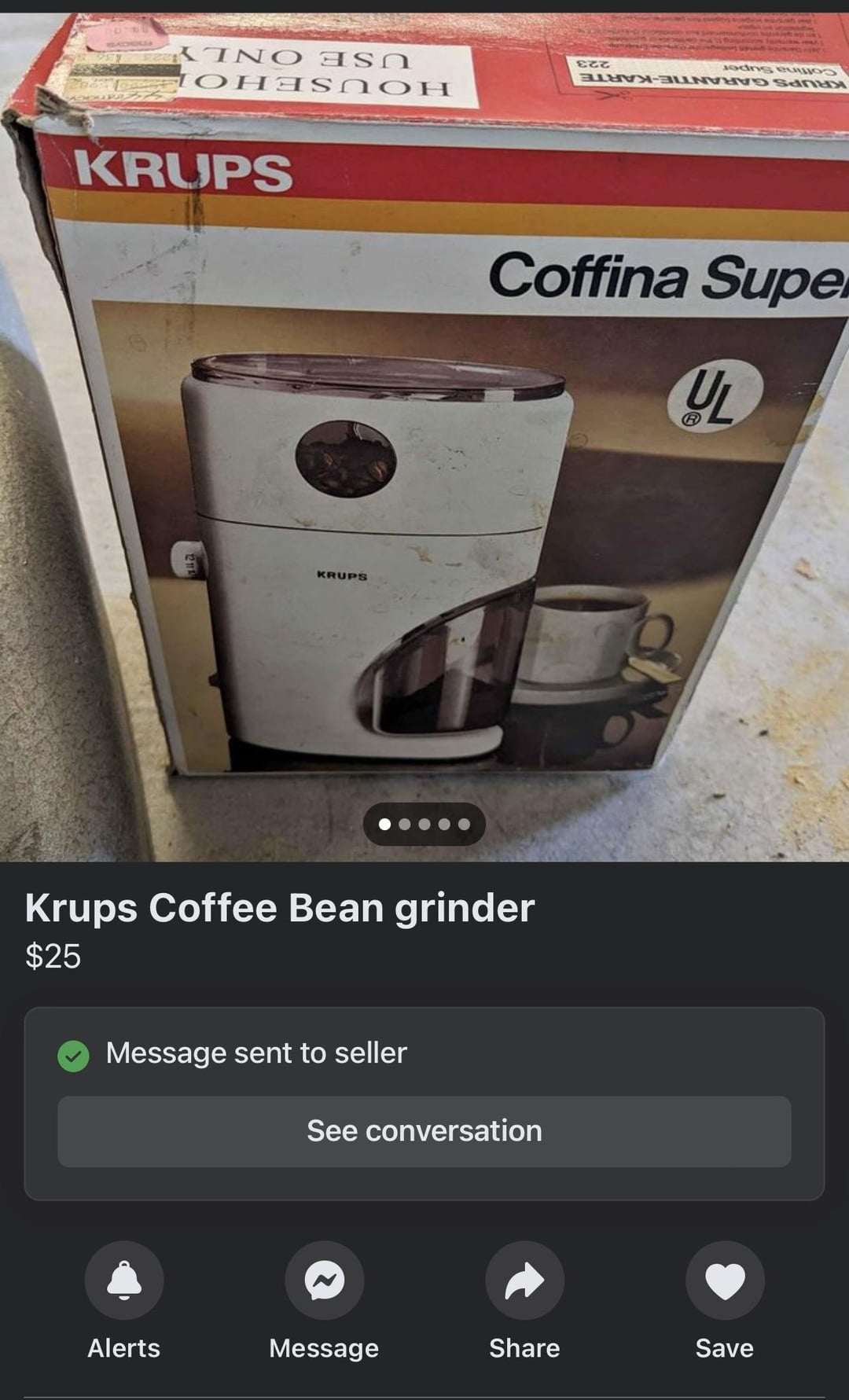 Found this Krups 223 coffee grinder (aka Mr. Fusion) on marketplace for $25. I believe it’s never been used! Looks great next to my Krups Brewmaster Jr.by gofast_dontdie Write A CommentYou must be logged in to post a comment.