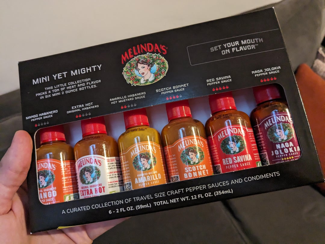 Nice selection — looks like the same size bottles that Walmart had which are great for sampling new sauces !