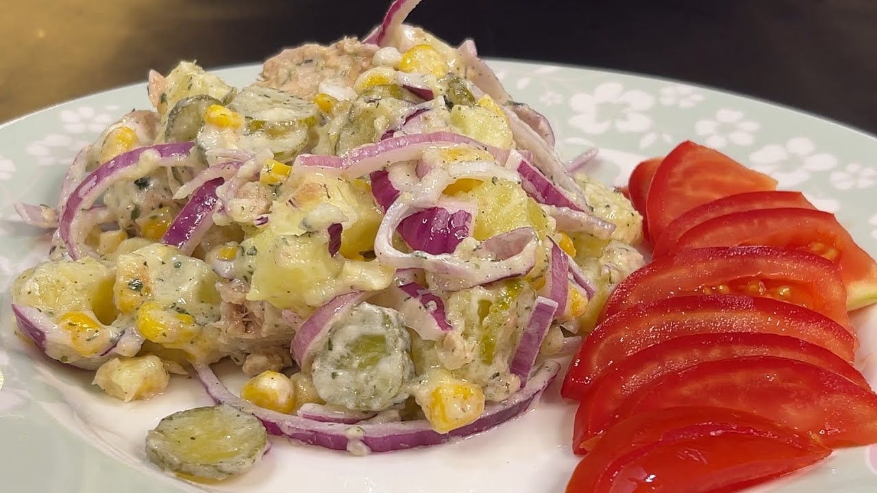 Today, for my dear friends, I prepared a quick, easy and delicious potato salad and canned tuna recipe for a snack. I hope you enjoy it.