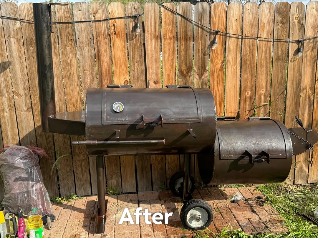 Woke up this morning started with scraping the whole smoker with a wiring brush, afterwards I grinded with a wire wheel and took a solid 3 hours, I then pressure washed the outside and inside before drying with a towel and letting it air dry for about 2 hours, it’s now seasoning with canola oil inside and out.