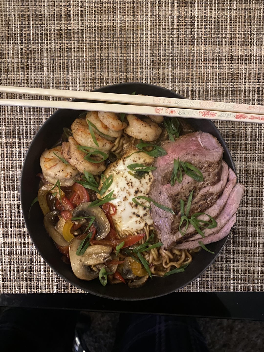 These images are some of the instant ramen versions I’ve thrown together with the ingredients I had at home at the time. In order of appearance they are Sriracha chicken, chapagetti, Spicy Jin, and “Neoghetti”