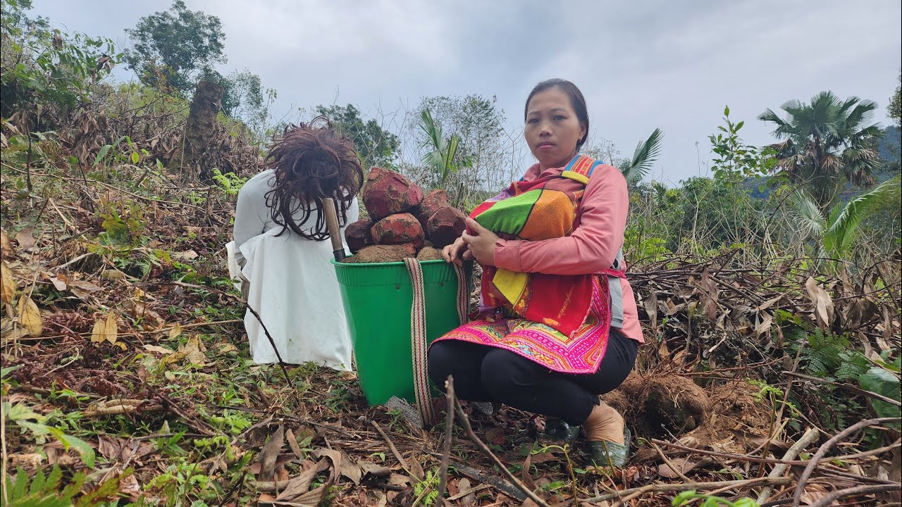 Gardening, buying vegetables for my husband, cutting tubers in the forest to sell.singlemom thào mai