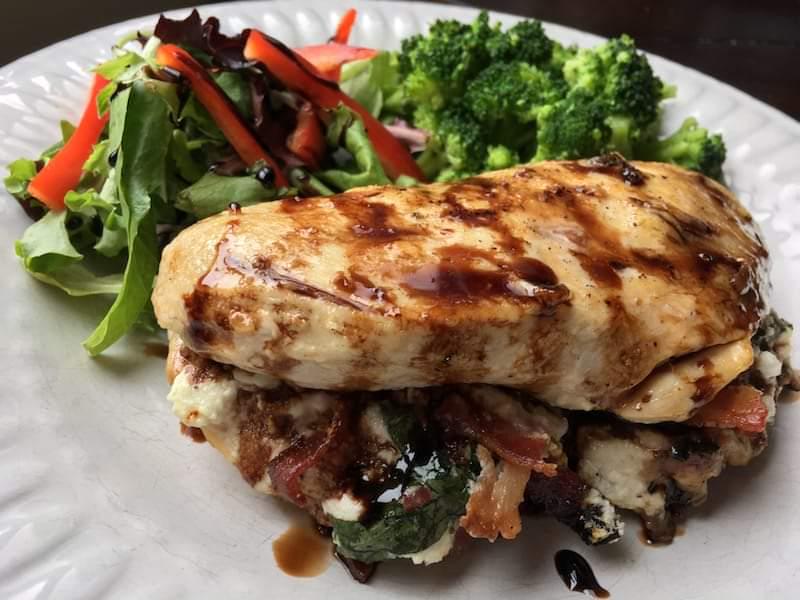 Bacon, Goat Cheese & Basil Stuffed Chicken Breasts