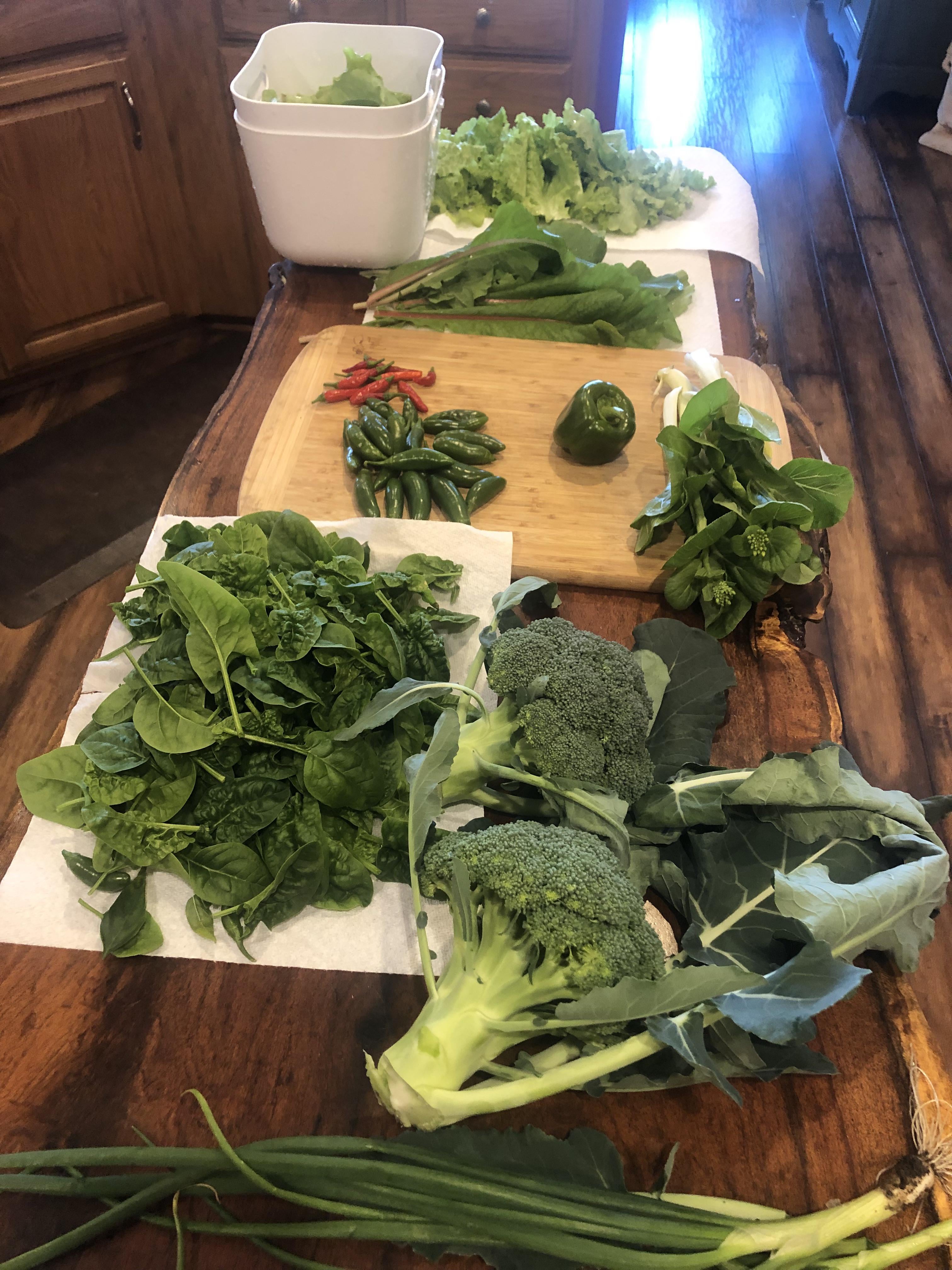 Gourmetanniemack 2 years ago Say it’s gonna get cold in Texas, zone 8B….picked lettuce, spinach, Serrano peppers, two nice broccoli crowns. Left my onions, garlic, shallot, beets, carrots, & 3 small broccoli.
