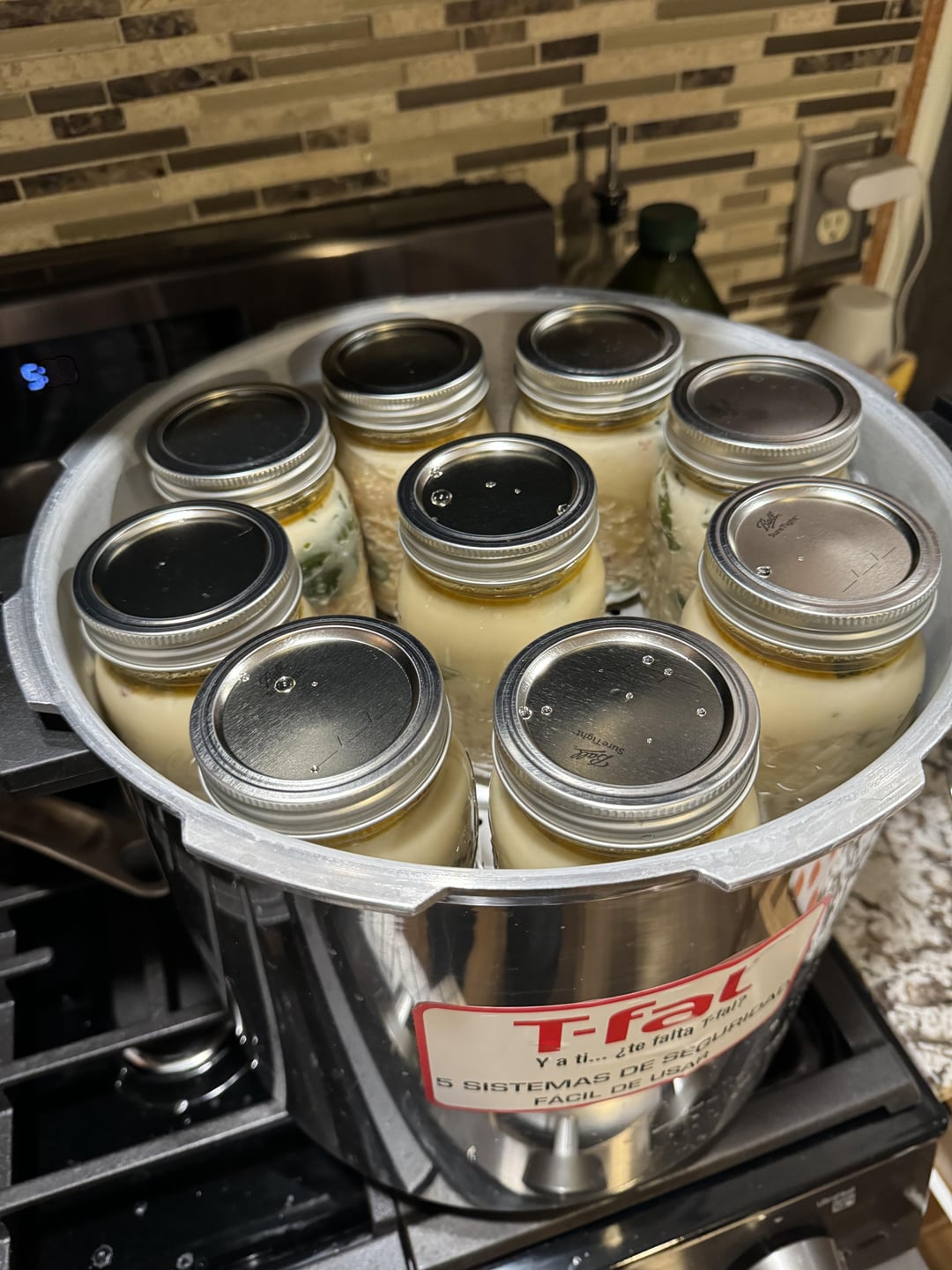 According the the USDA canning book (and i may have misread this) but it said to put 1/4 tsp of salt in with the water inside the canner with things containing meat – i also put the leftover vinegar inside the canner from my lids. Not sure if that’s standard practice but i saw a few people on YouTube do it, lol.