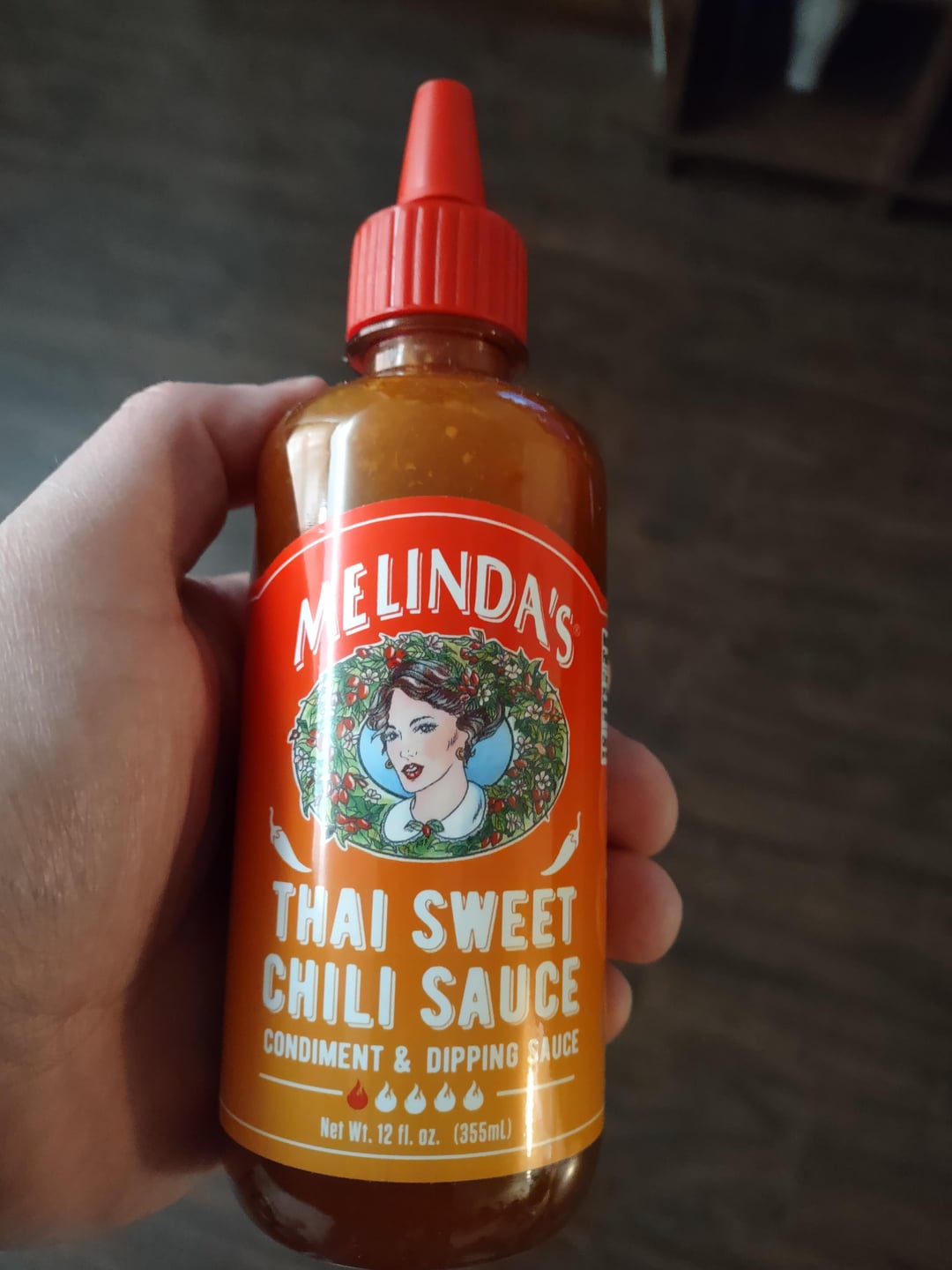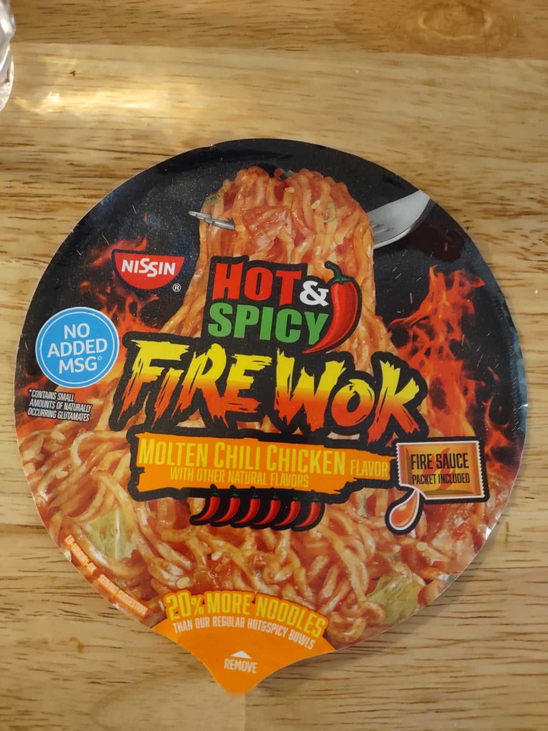 Nissin’ Hot & Spicy FireWok Molten Chili Chicken Flavor along with Melinda’s Thai Sweet Chili Sauce.