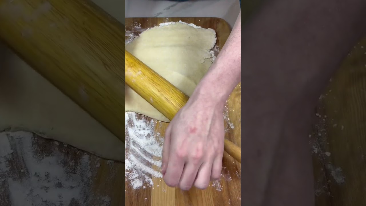 We are making biscuits and gravy to a large bowl we’re adding flour sugar baking powder salt and then Frozen butter we’ll then be adding our buttermilk to the center of this and then folding this all together we’ll then add this to a floured work surface and begin rolling it out my tip