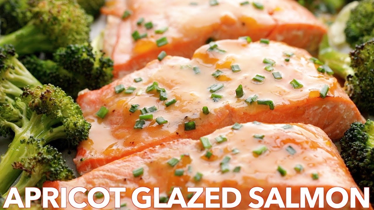 This apricot dijon honey glazed salmon recipe is an easy, excellent one-pan meal. The broccoli roasts together with the salmon and the glaze seals in the juices of the salmon make it moist and flaky baked fish for your next dinner.