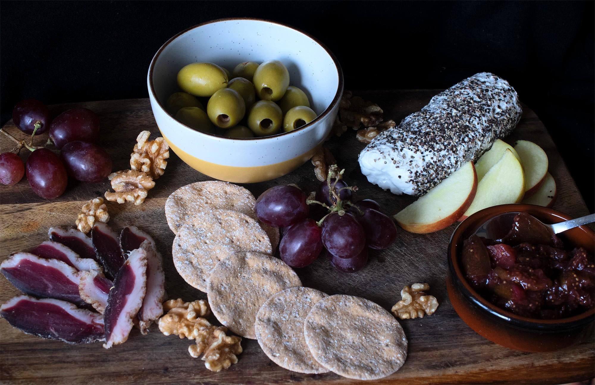 This little platter was a little over three weeks in the making. Not only is the charcuterie homemade (duck breast prosciutto,but that log of peppered soft fresh goat’s cheese was also made from scratch! I have never felt so proud of a snack in my life. 😂