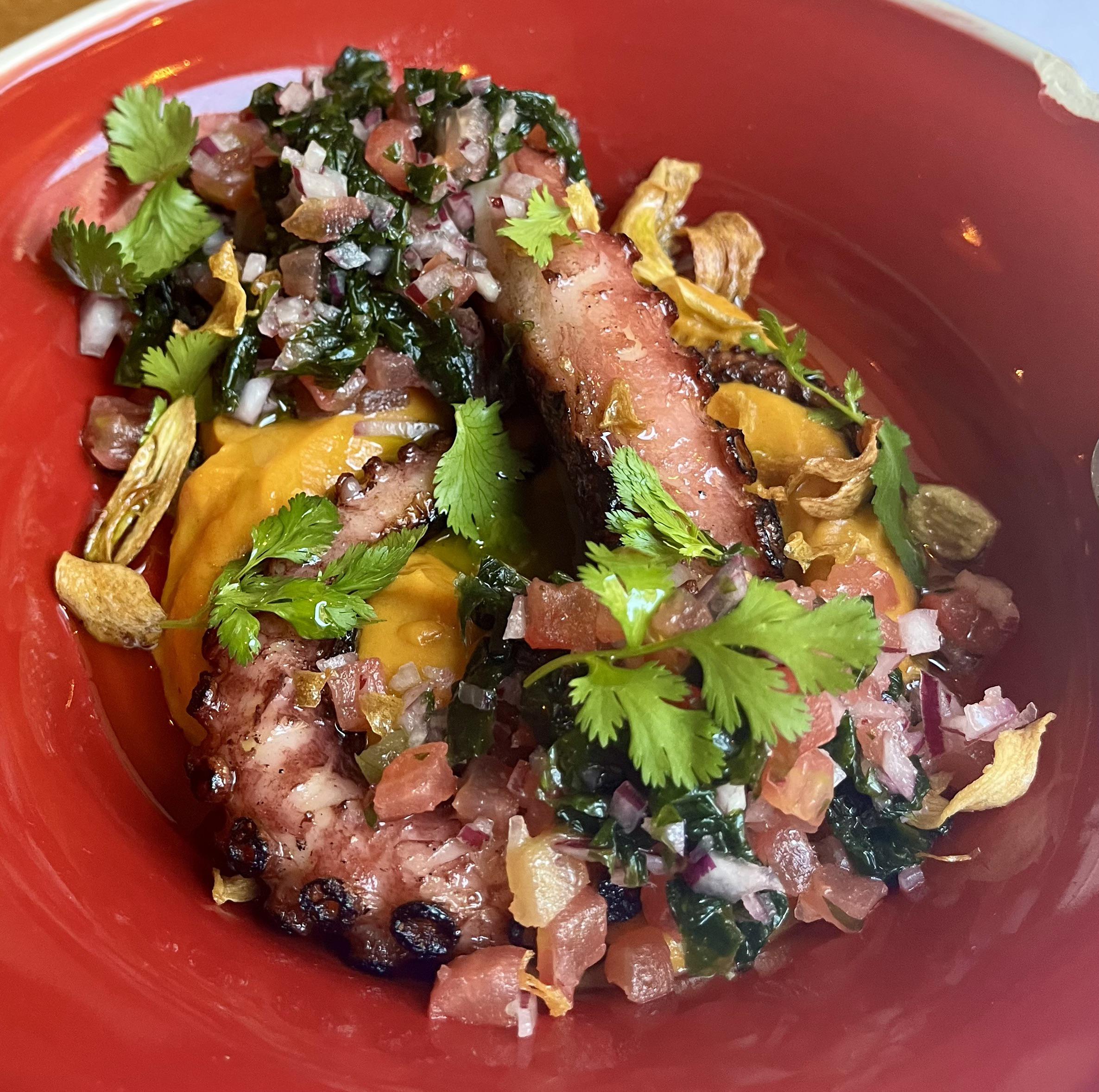 Grilled octopus over sweet potato purée with garlic chips & seaweed salad by CuteWolves Write A CommentYou must be logged in to post a comment.