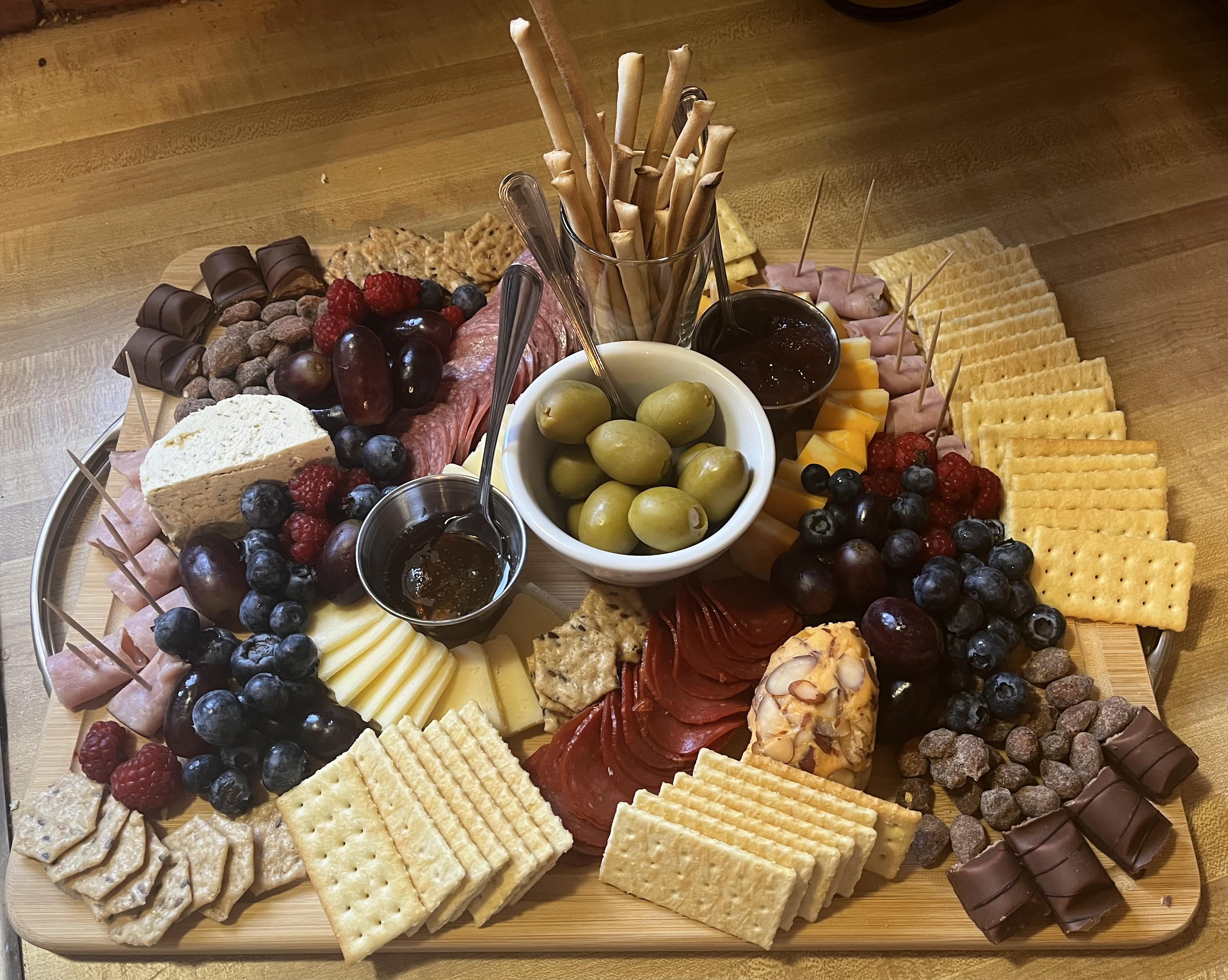 Bonus: This color palette and the lighting of your photo is very reminiscent of a Renaissance painting, and would be all the more so with fewer of the pale club crackers and addition instead of some darker grained ones as mentioned above. Either way, beautiful!