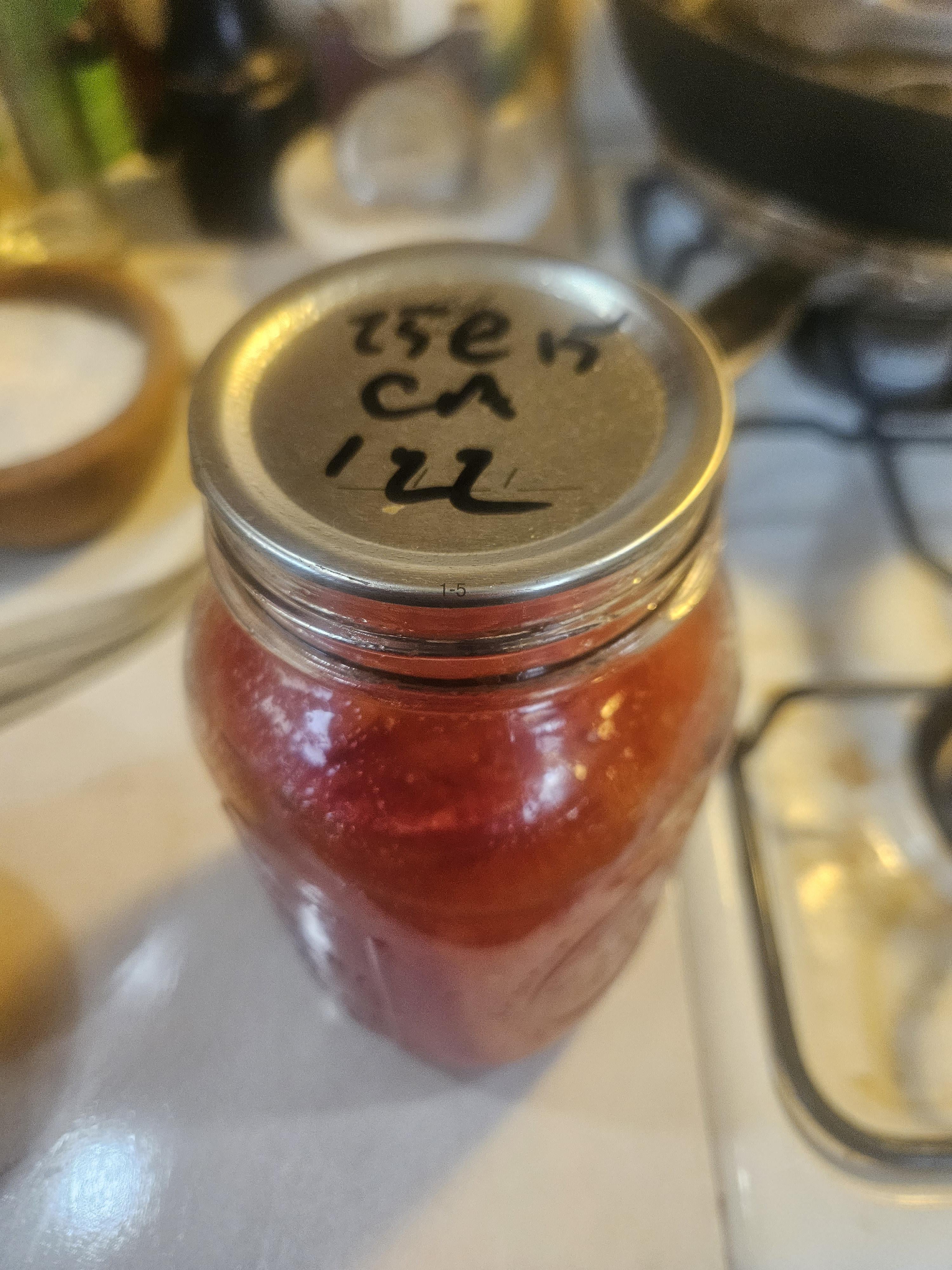 I might refine this more, but at a glance I know these were processed 25 minutes at 15 lbs of pressure, acidified with citric acid, packed in 2022.