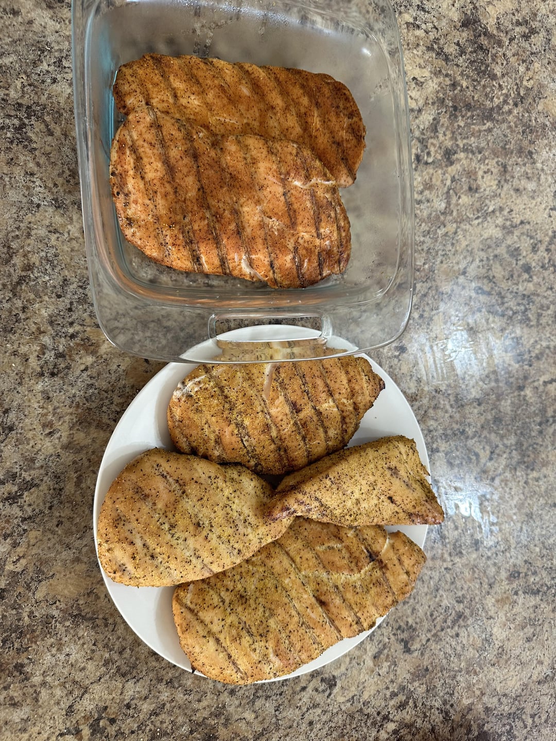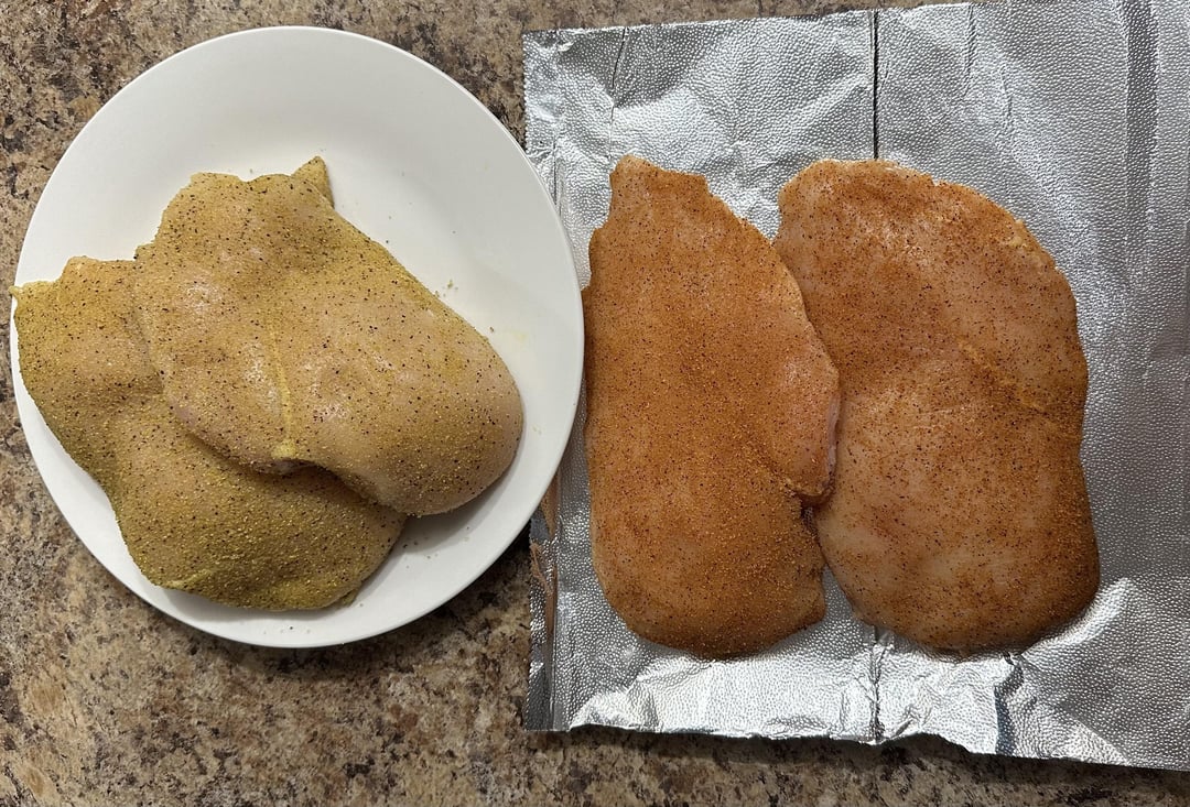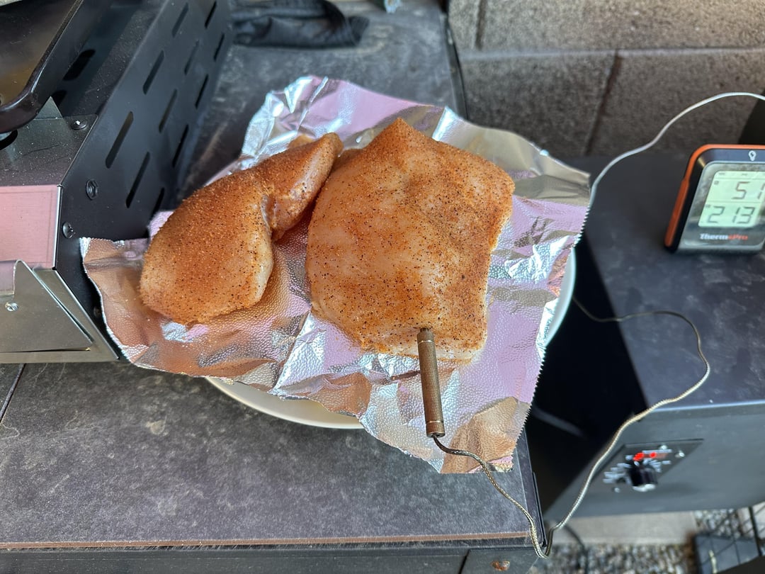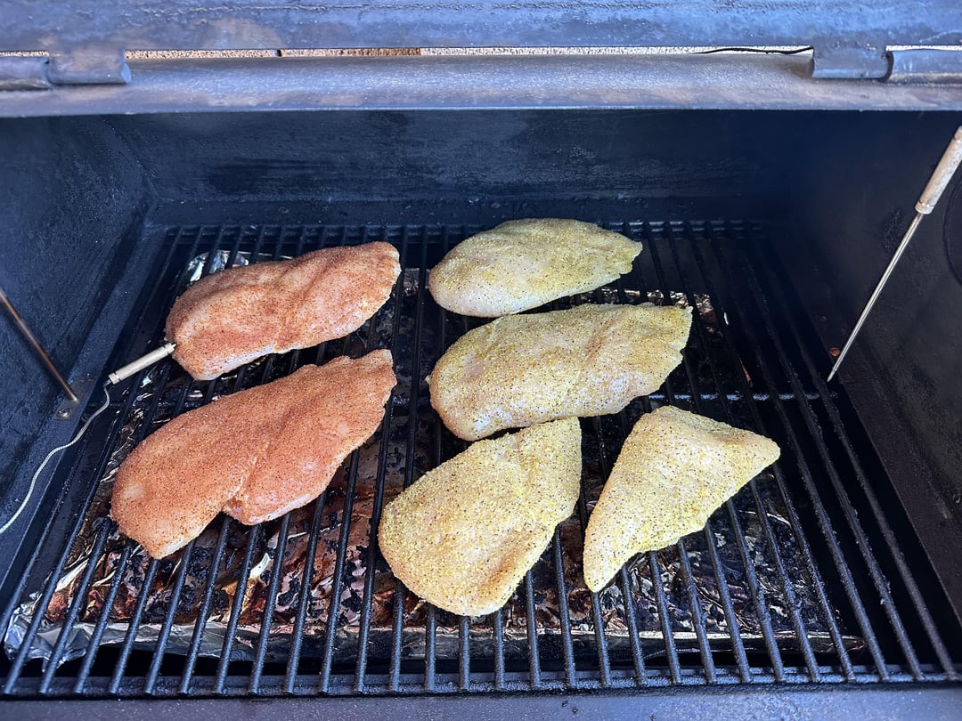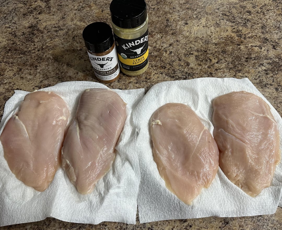 I made 5 boneless, skinless chicken breast seasoned with Kinder’s Lemon Pepper on 3 and Kinder’s Woodfired Garlic on 2 and did a reverse sear on the Traeger! All the chicken is full of flavor and the reverse sear is Traeger smoky goodness! Mmm Bon Appe’tite!