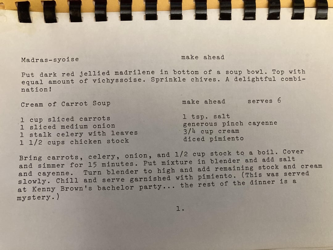 I posted the carrot soup recipe because I thought it was interesting and to show that the whole book isn’t like the picnic fries recipe.