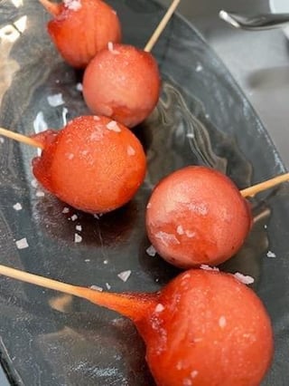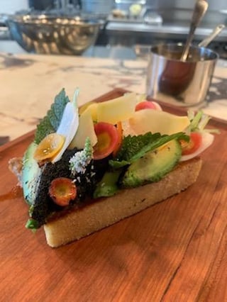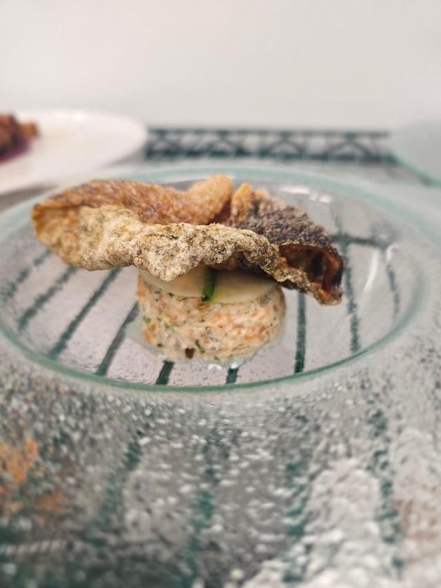 lollipop pic quality distracts me from the dish but it also looks lovely, although its very bland from a color palette perspective and kind of sits out from the rest. maybe a leek ash powder sifted over top, or something in that vein just to add one more layer.