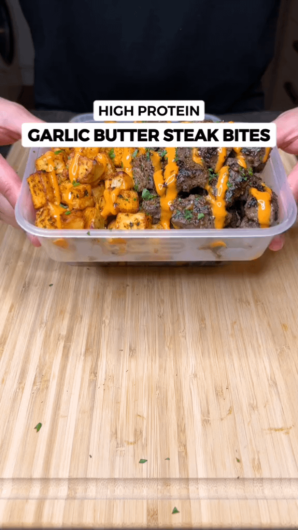 High Protein Garlic Butter Steak Bites & Crispy Potatoes!🥩🍟🔥 ONLY 480 Calories! recipe link in descriptionby Foodyideas Write A CommentYou must be logged in to post a comment.