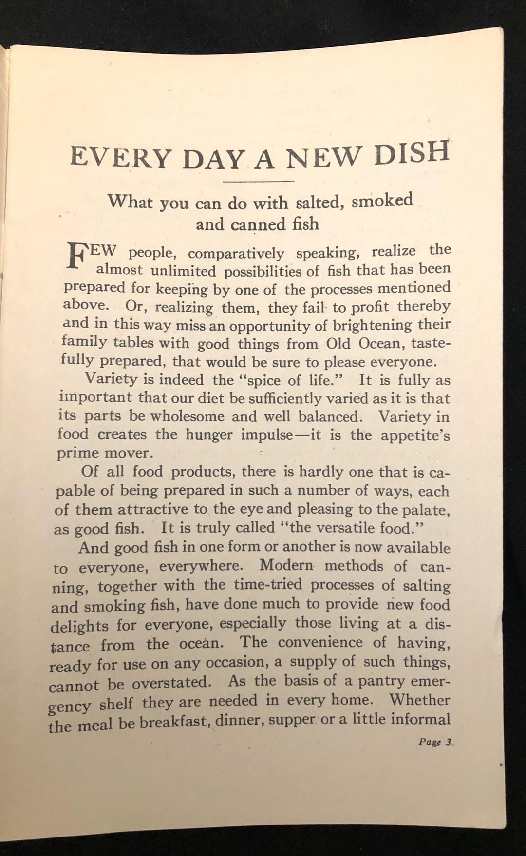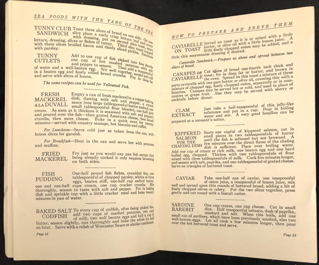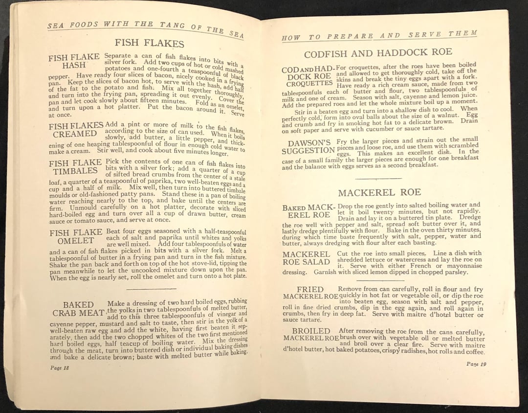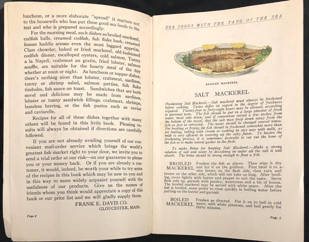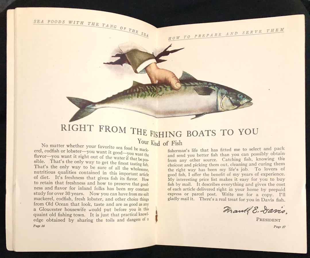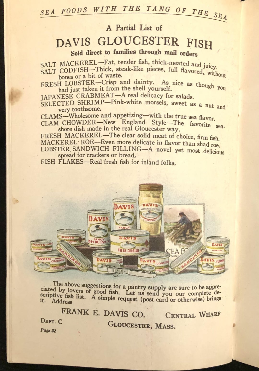 1920s tinned seafood recipe booklet, Davis Gloucester Fish, Massachusetts
