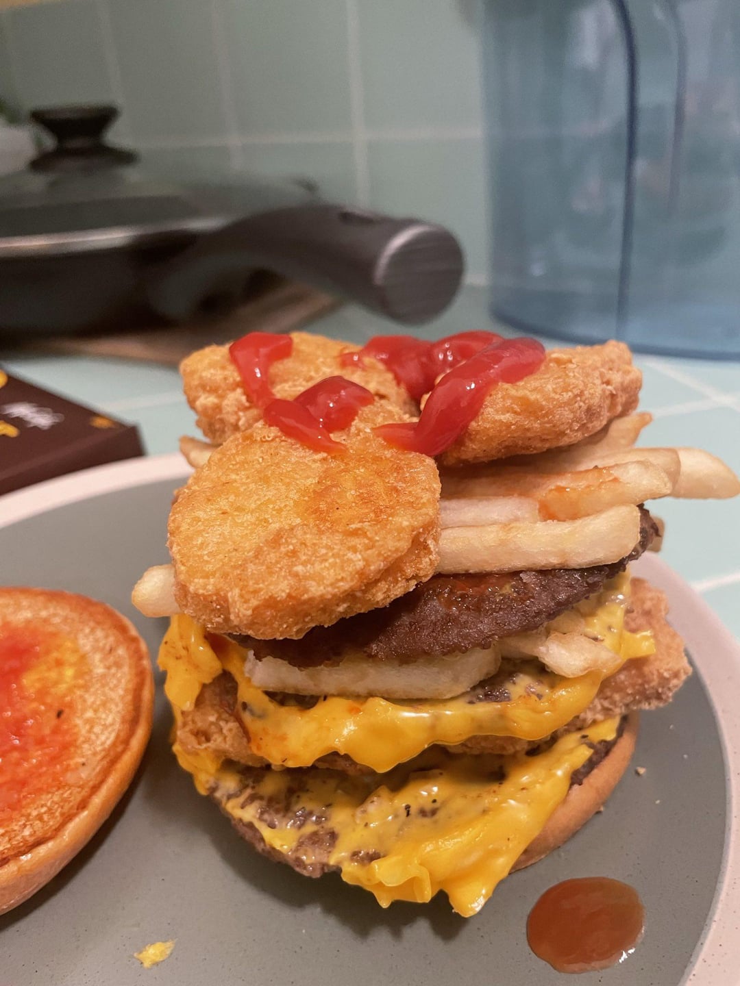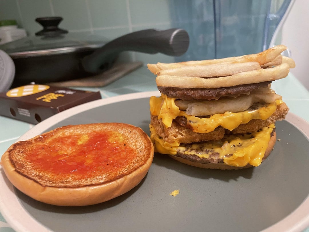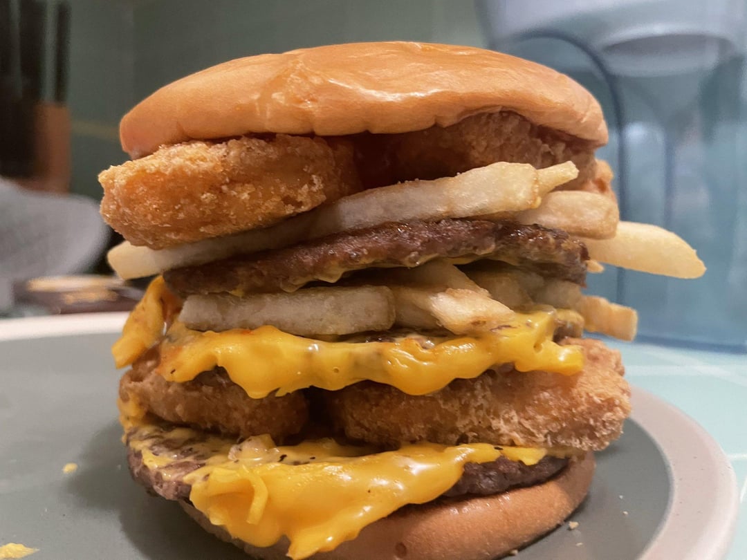 I donโ€™t need no stinking chicken getting in between me and my burger.