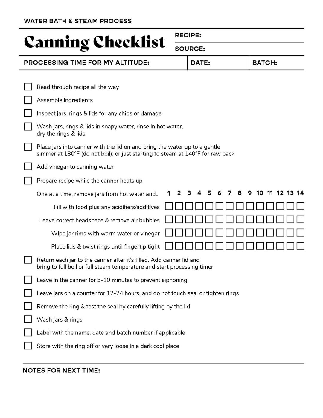 As a diagnosed scatterbrain, I’m a big fan of checklists for my own peace of mind. I’ve been canning for years & I’m fairly confident in my processes but I would love feedback if you can spot anything that needs improvement!