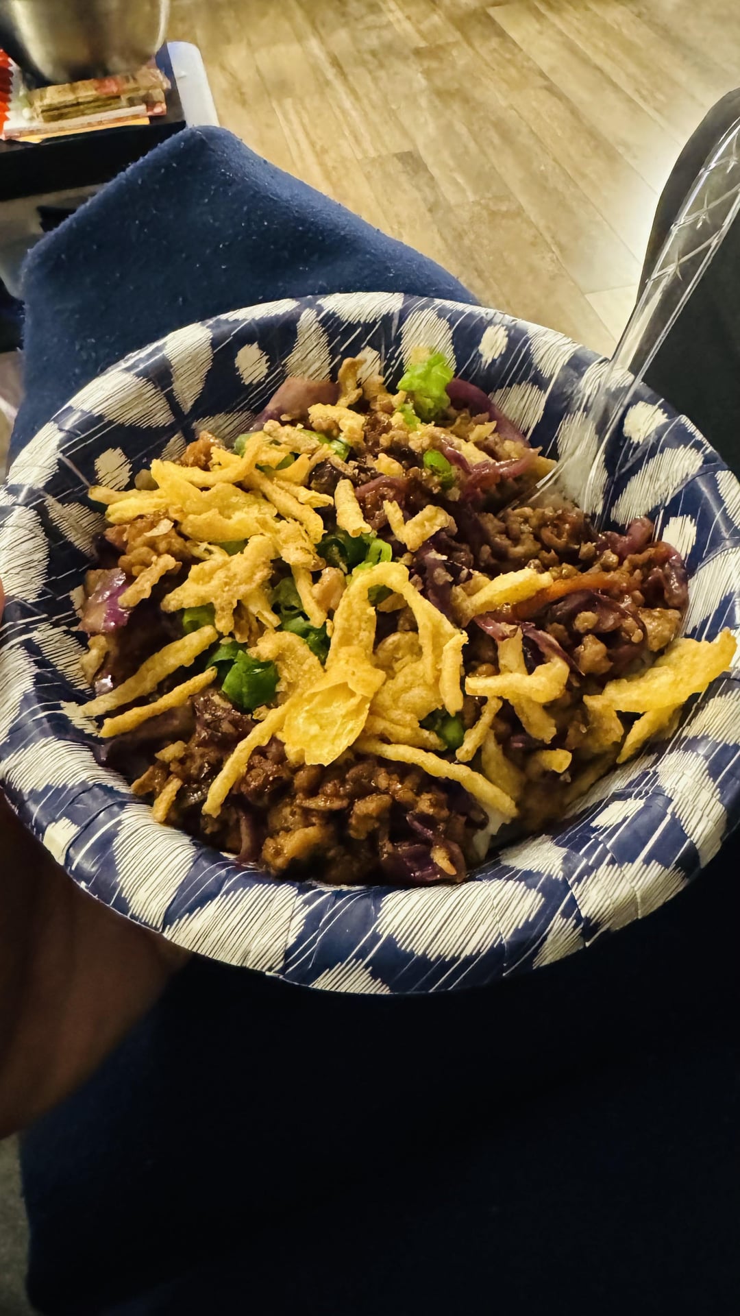 Took about 30 mins to cook, could use a bit more soy sauce, maybe 3/4 sugar in the sauce, or the whole pack of vinegar. I can’t put my tongue on it. I’ve got some extra fried onions, so I’ll use those tomorrow with my leftovers. I give it 9/10