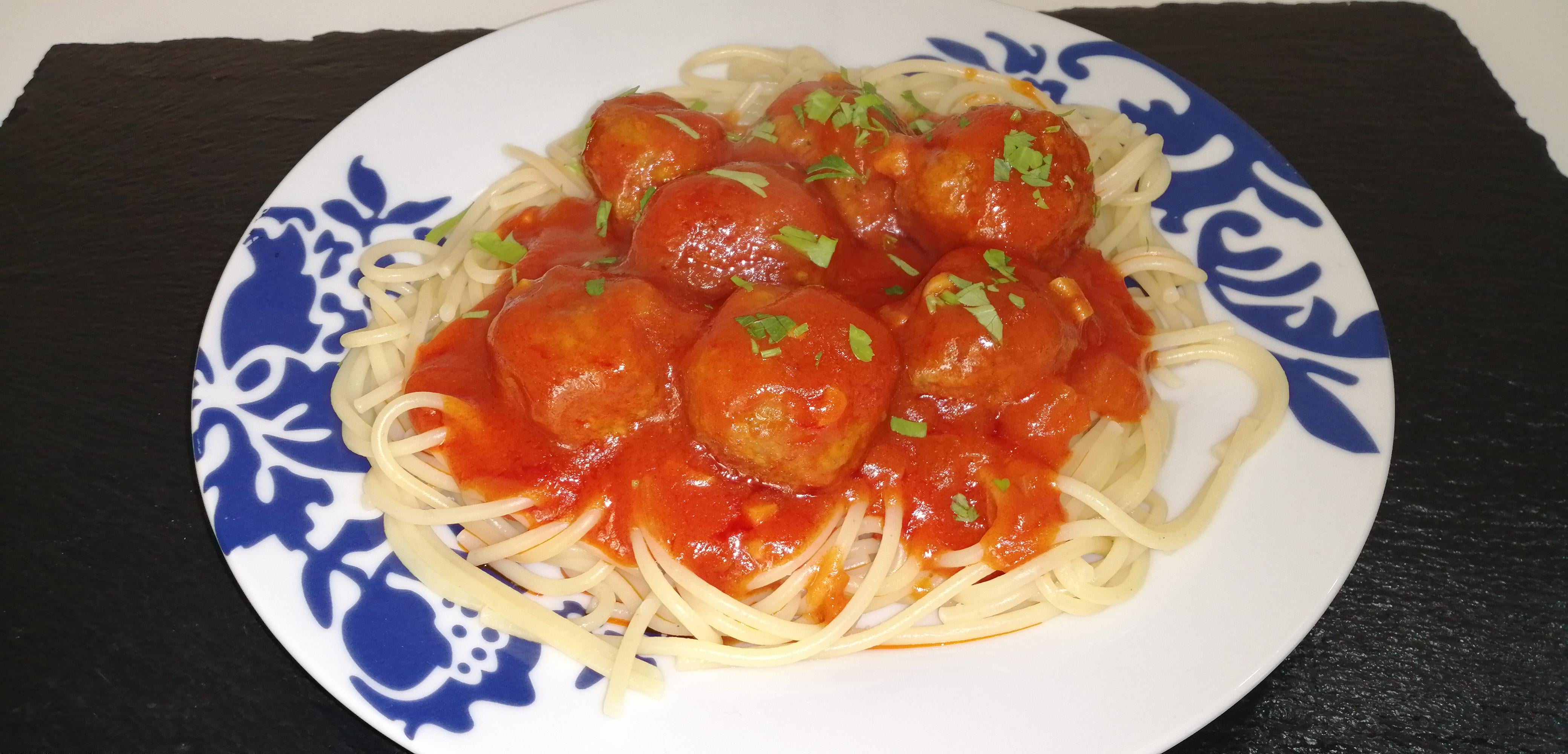 HomeCookingSpain 2 years ago 🧾Ingredients for 2 People:.300g Mini Meatballs300g Spaghetti400g Tomato SauceOnionGarlic1 Stock Cube1 Tsp Paprika100ml White WineOlive OilSaltFresh Parsley (optional to posh it up!).➡️Recipe Video: [https://youtu.be/nS-ADjiNg5g](https://youtu.be/nS-ADjiNg5g)