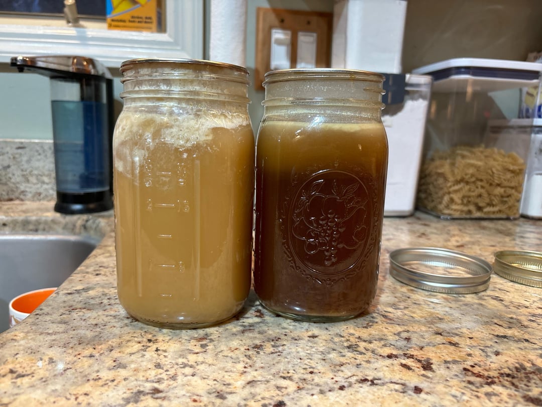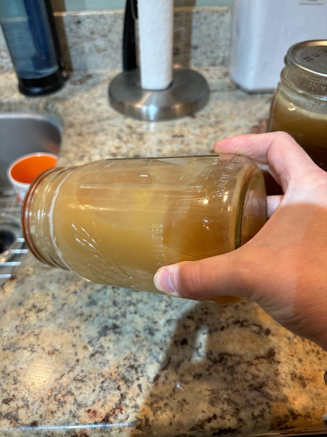 I made some beef broth and it seems the fat dissolved (one on the left). How they typically come out is on the right. Would you use the one on the left or just toss.